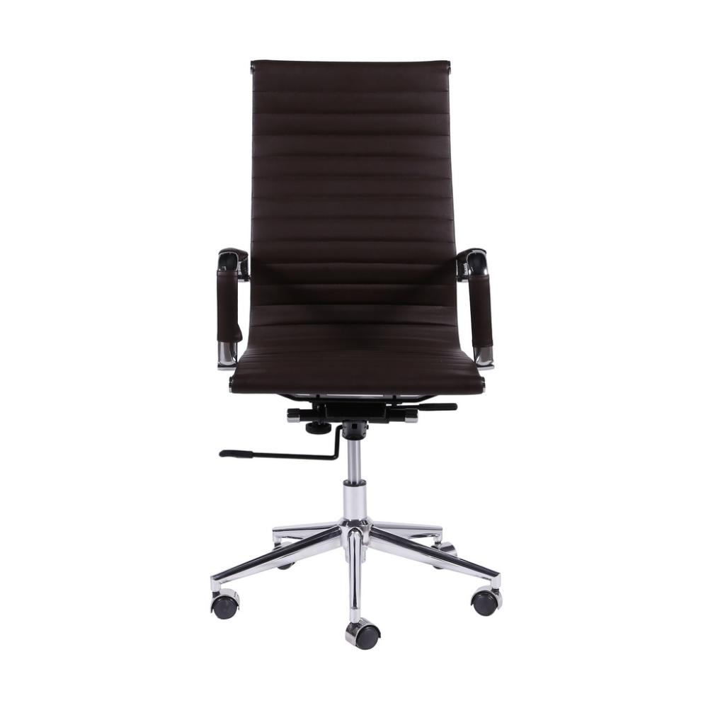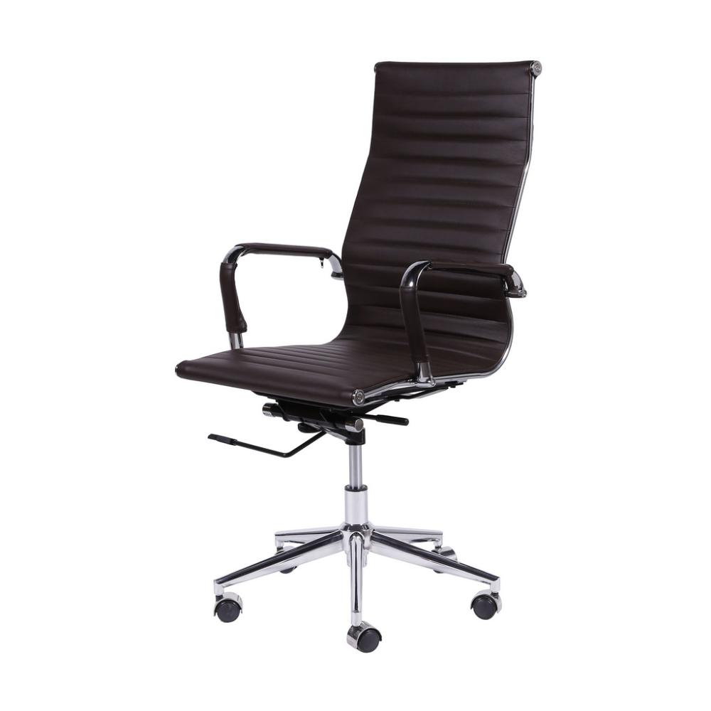 A Cadeira Presidente Eames é um clássico do design, suas características estão voltadas para curvatura da lombar proporcionando um maior conforto para suas horas de trabalho.A Cadeira Presidente Eames possue mecanismo relax e travamento, cotam com rodízio anti-risco e regulagem de altura.Ela é uma ótima escolha para sala de reunião ou seu home office! Com certeza o design e chame dessa cadeira será o destaque do seu ambiente!DESCRIÇÃO TÉCNICAMaterial: Couro Ecológico, Metal e Nylon.Acabamento: Couro EcológicoBase e braços: CromadoAssento e encosto com mecanismo relax e travamento.Rodízio anti-riscoAltura do assento até o chão: 49 à 55cmDimensões (LxPxA): 61 x 48 x 106 à 114 cmPeso: 15 KgPeso Máximo Suportado: 120 Kg
