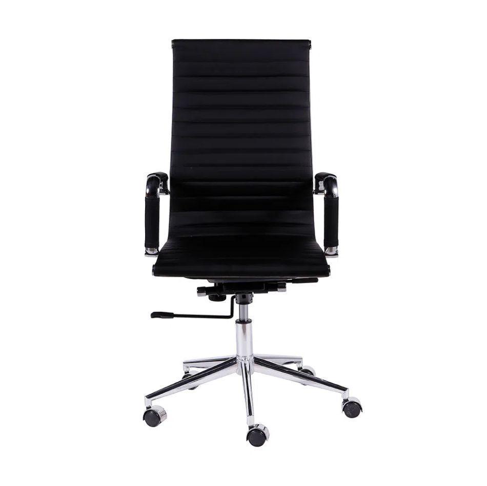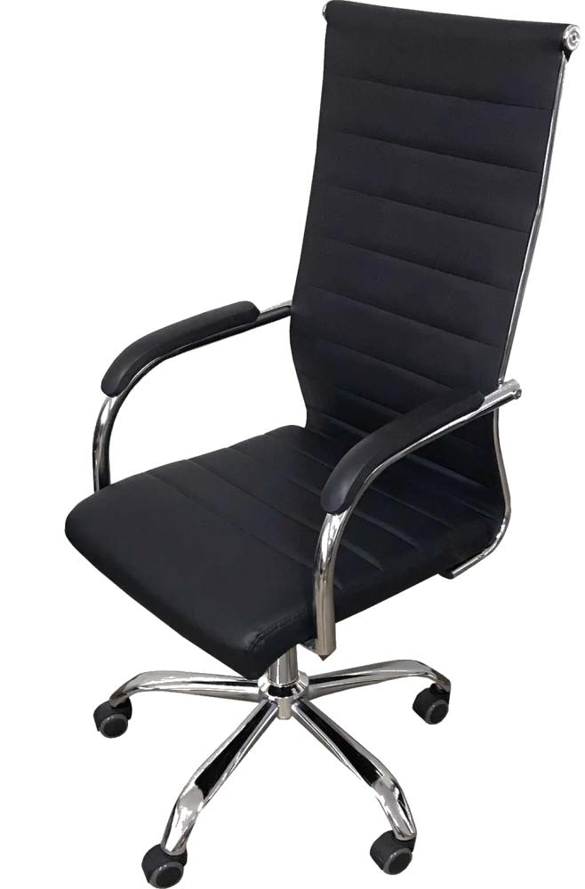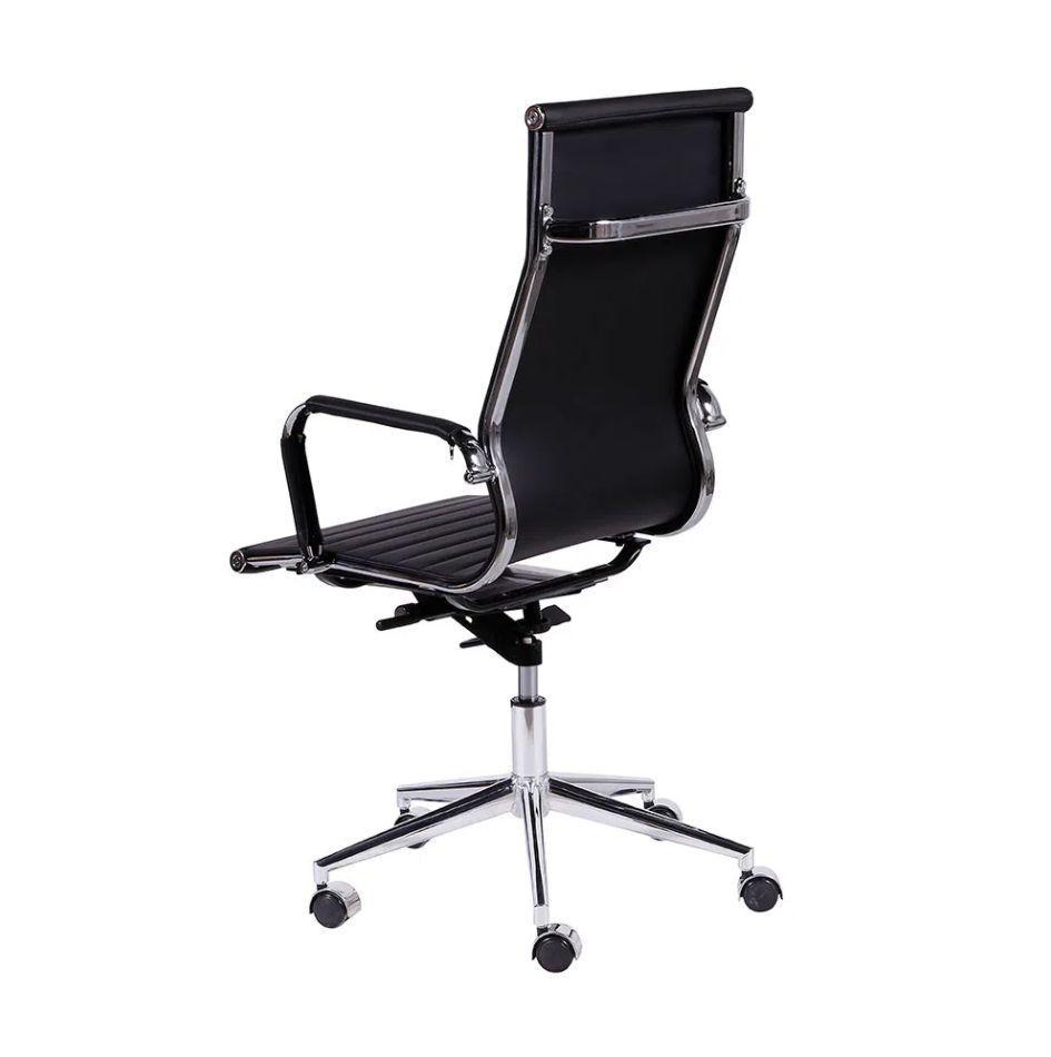 Uma cadeira diferenciada da linha office. Ideal para aperfeiçoar e deixar o seu escritório ou sala de reuniões ainda mais confortável. Este modelo é extremamente elegante e inovador.Metais – Cromo, alumínio e inox:Limpeza diária com flanela seca para remoção do pó;Nunca utilizar materiais abrasivos como esponja sintética, esponja de aço, saponáceos;Secar rapidamente qualquer líquido;Cadeiras de cromo jamais devem ser deixadas em áreas externas e não são recomendáveis para ambientes com maresia;Evitar batidas que comprometam a proteção conta oxidação.Descrição Técnica:Material: PUCor: PretaDimensões (LxPxA) : 54 x 48 x 106Peso do Produto: 13kgPeso Máximo Suportado: 120kgGarantia:O produto possui garantia do fornecedor de 6 meses contra defeitos de fabricação a partir da emissão da nota fiscal.Verificar no ato do recebimento os kits de parafuso e montagem que estarão em uma embalagem específica dentro da caixa.