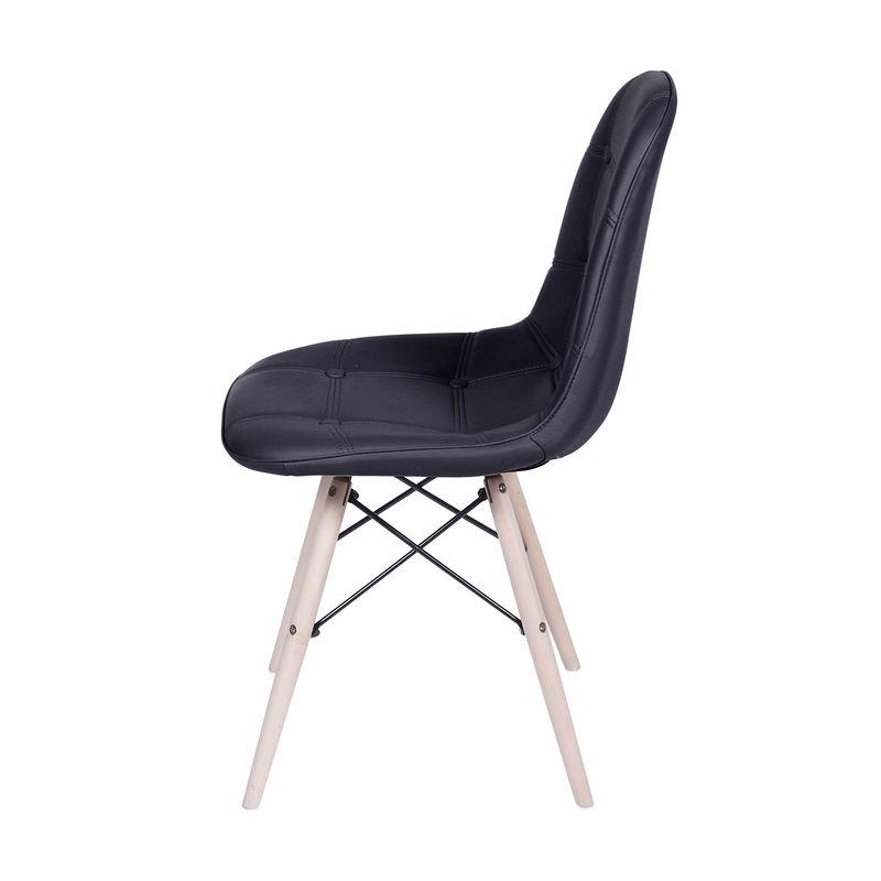 DESCRIÇÃO TÉCNICAMaterial: Polipropileno, madeira e estofadoPés em Madeira e metalAssento: Estofado com acabamento em couro ecológico.Dimensões (LxPxA) : 44 x 40 x 83cmAltura do Assento: 43 cmPeso: 3.7 KgPeso Máximo Suportado: 120 KgINFORMAÇÕES DO PRODUTOCom o design moderno, essa cadeira é ideal pra quem se preocupa com estética sem abrir mão do conforto.A Cadeira Eames Botonê é uma mobília sofisticada para compor diversos tipos de ambientes profissionais ou particulares.O modelo é importado, feito de material resistente. Produto de montagem simples e rápida. Ela garante postura correta e equilibrada, contribuindo para a sua saúde postural. Pode ocorrer a variação de cor na tonalidade da madeira.