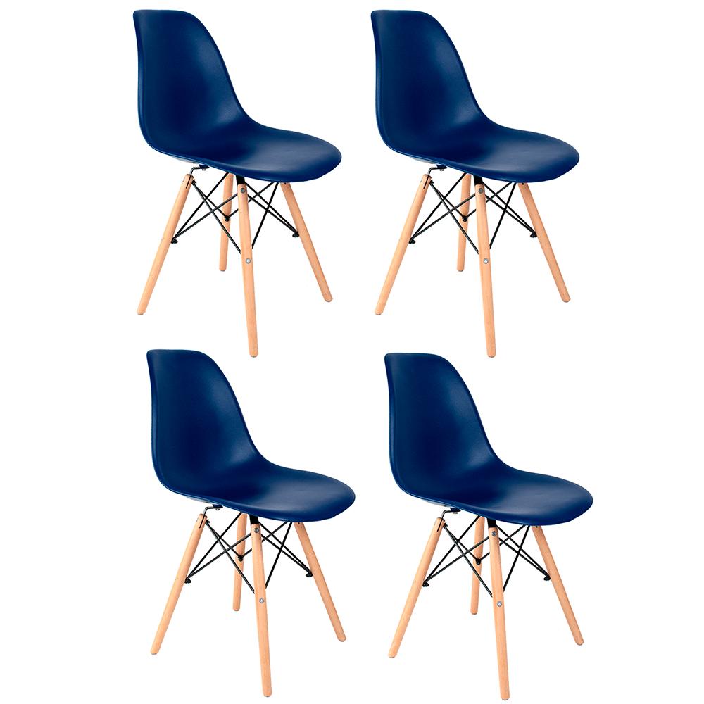 Conheça nossa linha de Cadeira Eames e se apaixone por esse modelo que vai mudar o ambiente da sua casa, deixando ainda mais moderno, bonito e sofisticado.A Cadeira é um item que faz toda a diferença em um ambiente e Charles Eames fez história na indústria mundial de móveis com modelos exclusivos de cadeiras nos anos 50 que continuam inspirando designs até hoje. Nossa Cadeira Eames com Base de Madeira Natural DSW foram inspiradas nesses modelos de Charles Eames. São Cadeiras, com curvas detalhadamente desenvolvidas para o seu conforto. Essa Cadeira é ideal para ambientes como; sala de jantar,Com altíssima qualidade, nossas Cadeiras Eames foram desenvolvidas com formato ergonômico para melhor adaptação e experiência de nossos consumidores; sua concha é produzida em PP (Polipropileno) garantindo durabilidade e conforto em seu encosto. Os pés são feitos em madeira natural de carvalho, proporcionando a beleza e charme da sua Cadeira, além de uma grade em aço no modelo Eiffel que proporciona segurança e firmeza para sua base. A cadeira ainda conta com sapatas antiderrapantes evitando deslizamentos e acidentes com seu produto, garantindo a confiabilidade da marca Empório Tiffany.Muito mais que um item de decoração, sua Cadeira Eames é uma peça funcional, moderna e adequada para os momentos mais agradáveis em família ou entre amigos.Montagem: Sua Cadeira Eames com Base de Madeira Natural será enviada desmontada, porém acompanhado de um manual de instruções e kit de montagem, não sendo necessário a contratação de um profissional para montagem.Obs.: Todos os itens enviados devem ser utilizados na montagem, a falta de algum parafuso ou arruela pode causar instabilidade, podendo ocasionar a quebra da concha e a perda da validade da garantia. Orientamos a seguir todos os passos informados no manual de montagem.Limpeza: A Cadeira Eames pode ser limpa com apenas um pano levemente umedecido com água, seguido de um pano seco. Não utilizar produtos químicos abrasivos ou limpeza a vapor, isso pode danificar seu produto, causando a perda da garantia do fabricante.Medidas do produto: Largura: 46cm x Altura: 81cm x Comprimento: 53,5cm.Cor: Azul BicQuantidade: 4Garantia: 90 dias a partir da emissão da nota fiscal.