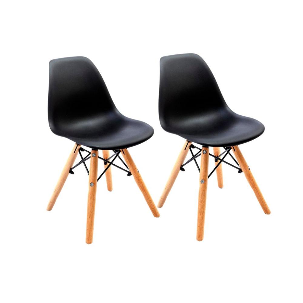 Conjunto Com 2 Cadeiras Eames Infantil Preta Base Em Madeira - Empório Tiffany