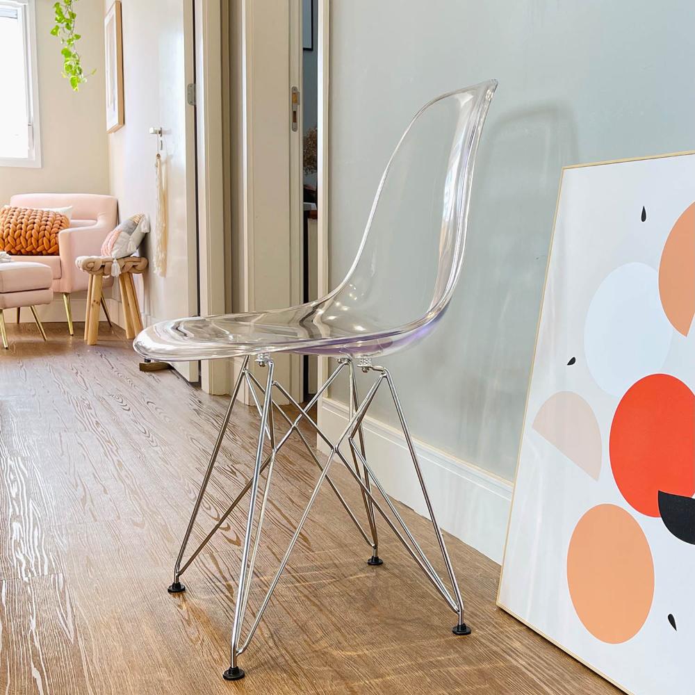 Cadeira Eames Eiffel Transparente Base Aço Cromado
