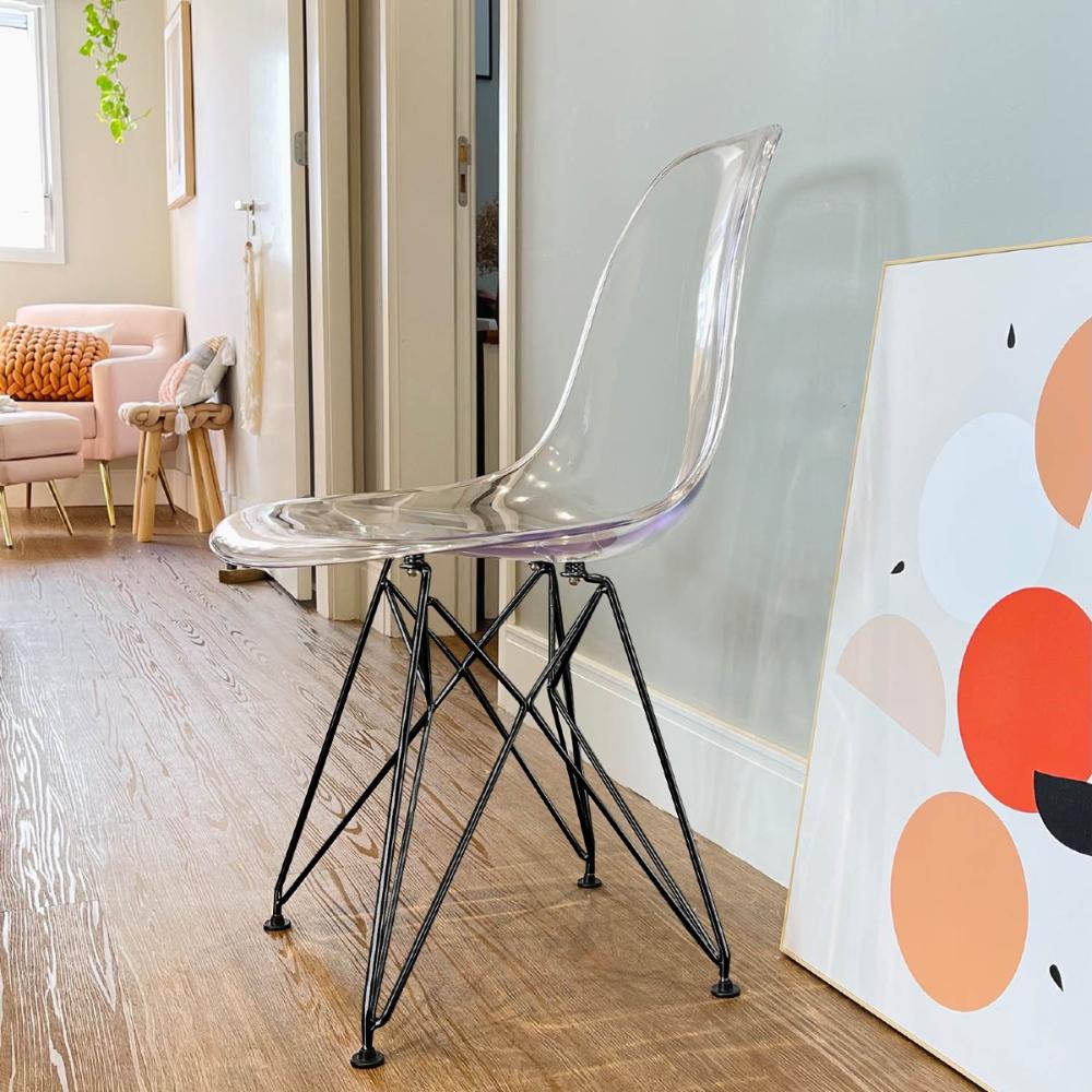 Cadeira Eames Eiffel Transparente Base Preta
