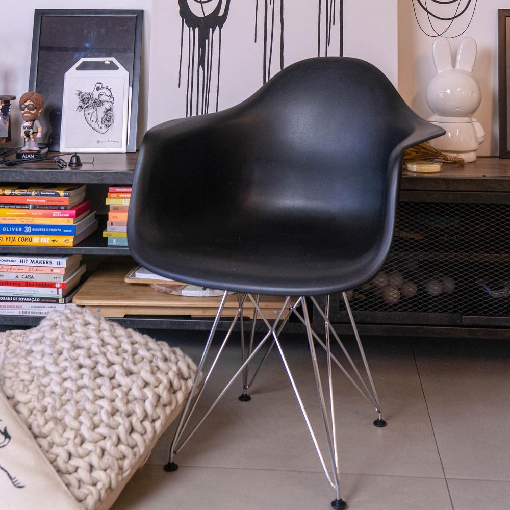 Cadeira Eames Com Braço Eiffel Preta Base Aço Cromado