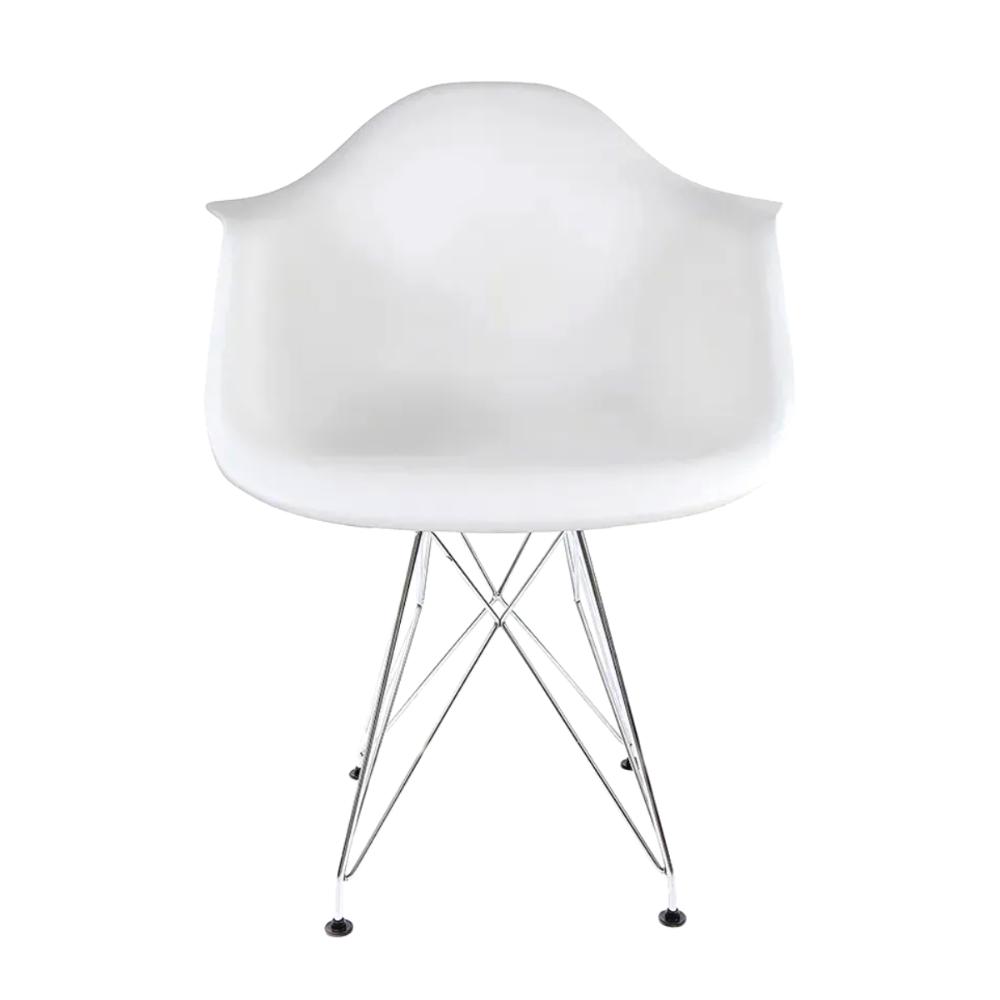 Cadeira Eames Com Braço Eiffel Branco Base Aço Cromado
