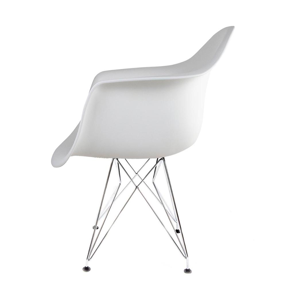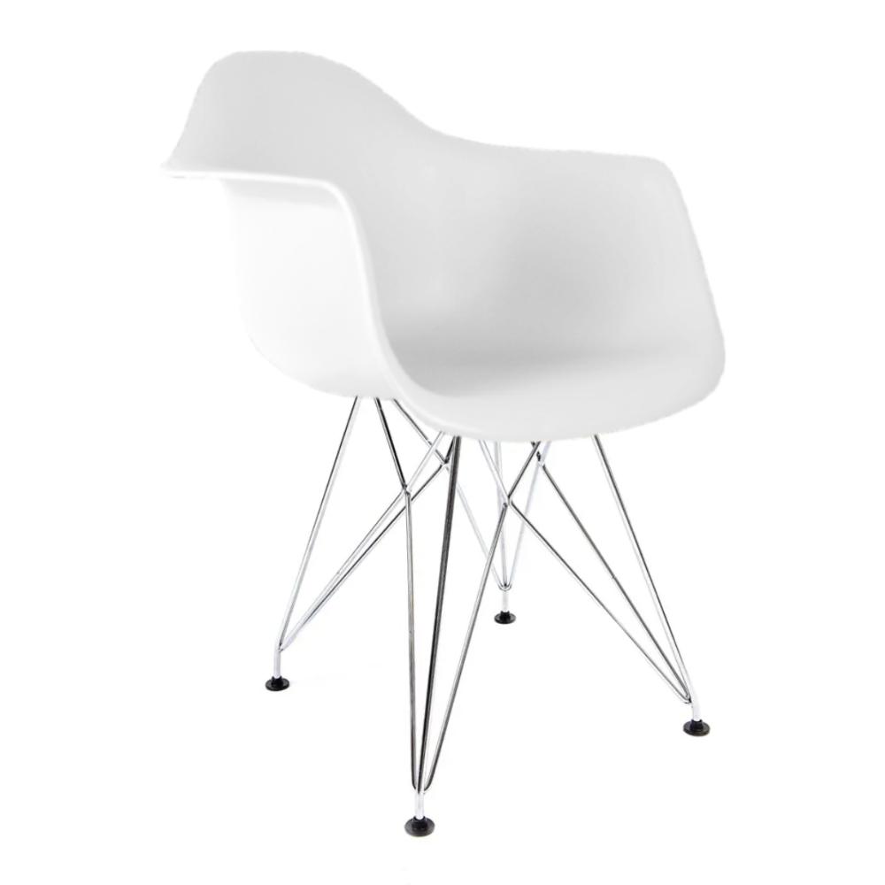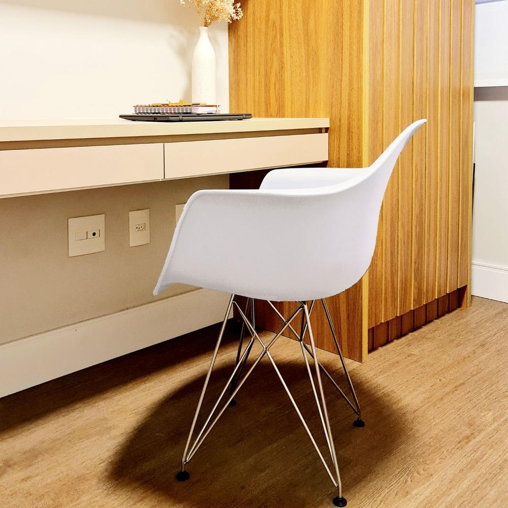 Conjunto Com 2 Cadeiras Eames Com Braço Eiffel Branco Base Aço Cromado