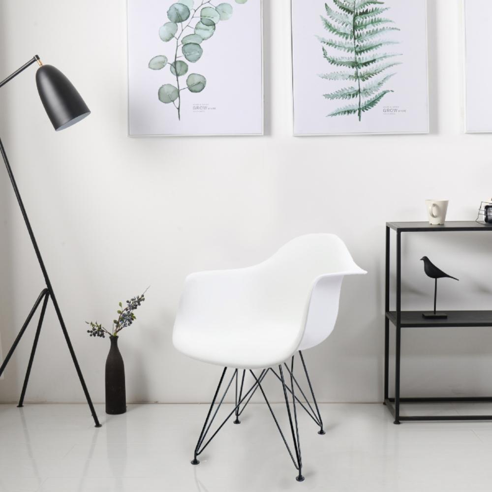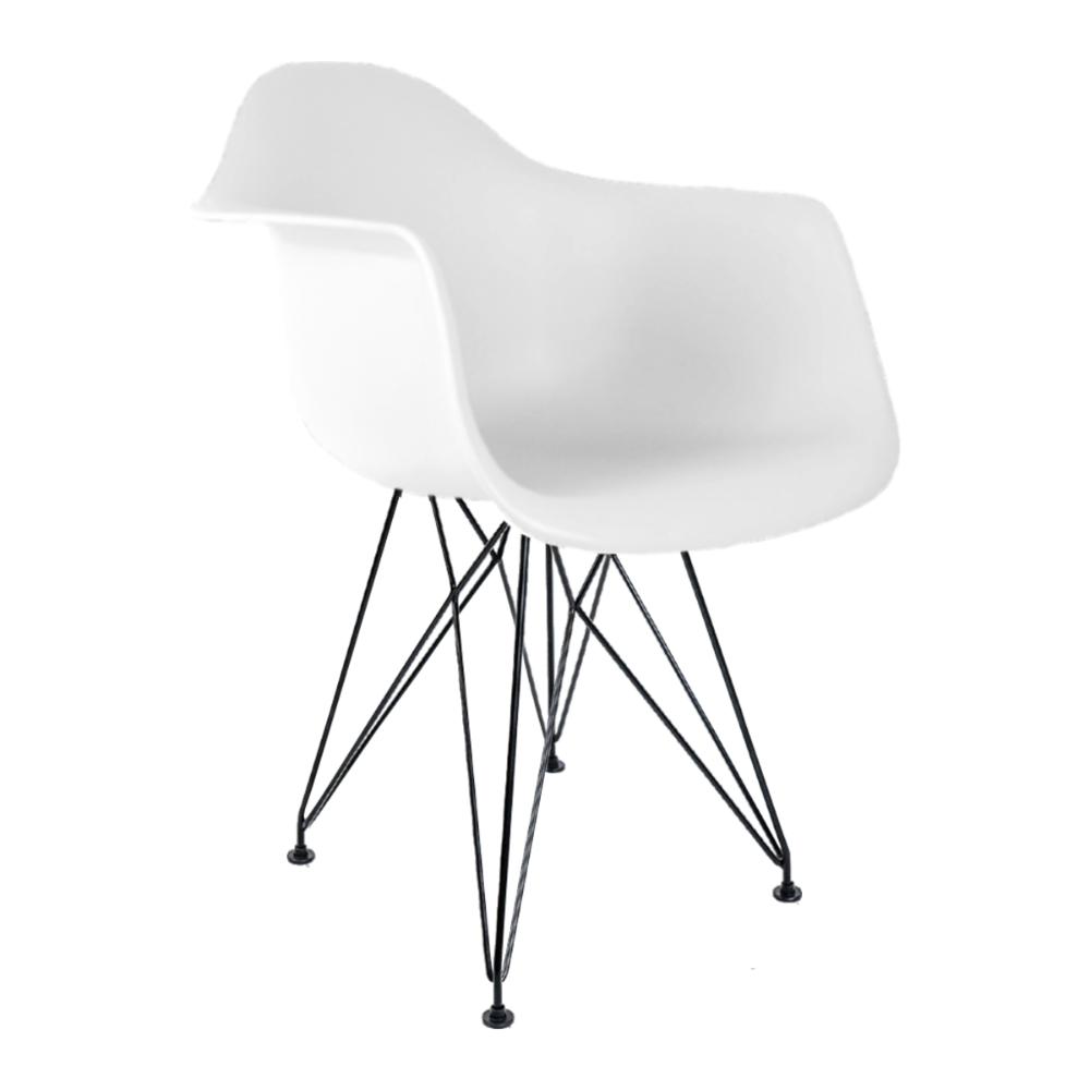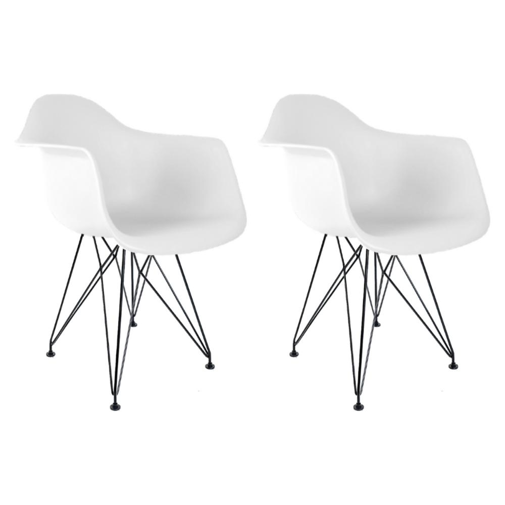 Conjunto Com 2 Cadeiras Eames Com Braço Eiffel Branco Base Preta