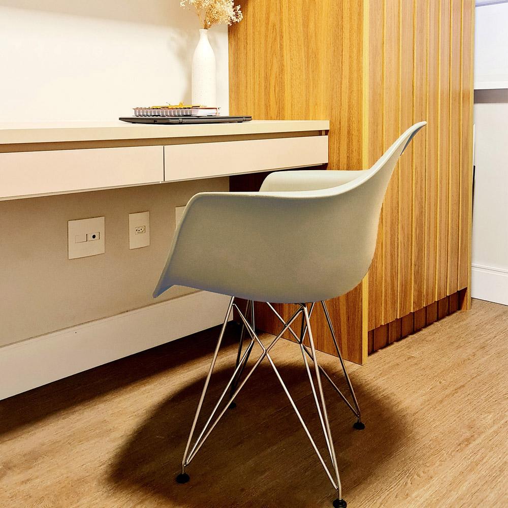 Cadeira Eames Com Braço Eiffel Fendi Base Aço Cromado