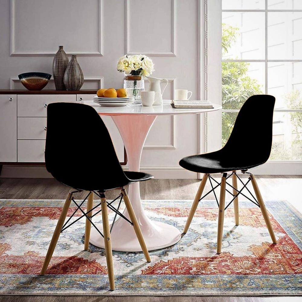 Conheça nossa linha de Cadeira Eames e se apaixone por esse modelo que vai mudar o ambiente da sua casa, deixando ainda mais moderno, bonito e sofisticado.A Cadeira é um item que faz toda a diferença em um ambiente e Charles Eames fez história na indústria mundial de móveis com modelos exclusivos de cadeiras nos anos 50 que continuam inspirando designs até hoje. Nossa Cadeira Eames com Base de Madeira Natural DSW foram inspiradas nesses modelos de Charles Eames. São Cadeiras, com curvas detalhadamente desenvolvidas para o seu conforto. Essa Cadeira é ideal para ambientes como; sala de jantar,Com altíssima qualidade, nossas Cadeiras Eames foram desenvolvidas com formato ergonômico para melhor adaptação e experiência de nossos consumidores; sua concha é produzida em PP (Polipropileno) garantindo durabilidade e conforto em seu encosto. Os pés são feitos em madeira natural de carvalho, proporcionando a beleza e charme da sua Cadeira, além de uma grade em aço no modelo Eiffel que proporciona segurança e firmeza para sua base. A cadeira ainda conta com sapatas antiderrapantes evitando deslizamentos e acidentes com seu produto, garantindo a confiabilidade da marca Empório Tiffany.Muito mais que um item de decoração, sua Cadeira Eames é uma peça funcional, moderna e adequada para os momentos mais agradáveis em família ou entre amigos.Montagem: Sua Cadeira Eames com Base de Madeira Natural será enviada desmontada, porém acompanhado de um manual de instruções e kit de montagem, não sendo necessário a contratação de um profissional para montagem.Obs.: Todos os itens enviados devem ser utilizados na montagem, a falta de algum parafuso ou arruela pode causar instabilidade, podendo ocasionar a quebra da concha e a perda da validade da garantia. Orientamos a seguir todos os passos informados no manual de montagem.Limpeza: A Cadeira Eames pode ser limpa com apenas um pano levemente umedecido com água, seguido de um pano seco. Não utilizar produtos químicos abrasivos ou limpeza a vapor, isso pode danificar seu produto, causando a perda da garantia do fabricante.Medidas do produto: Largura: 46cm x Altura: 81cm x Comprimento: 53,5cm.Cor: PretoQuantidade: 2Garantia: 90 dias a partir da emissão da nota fiscal.
