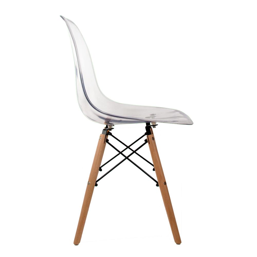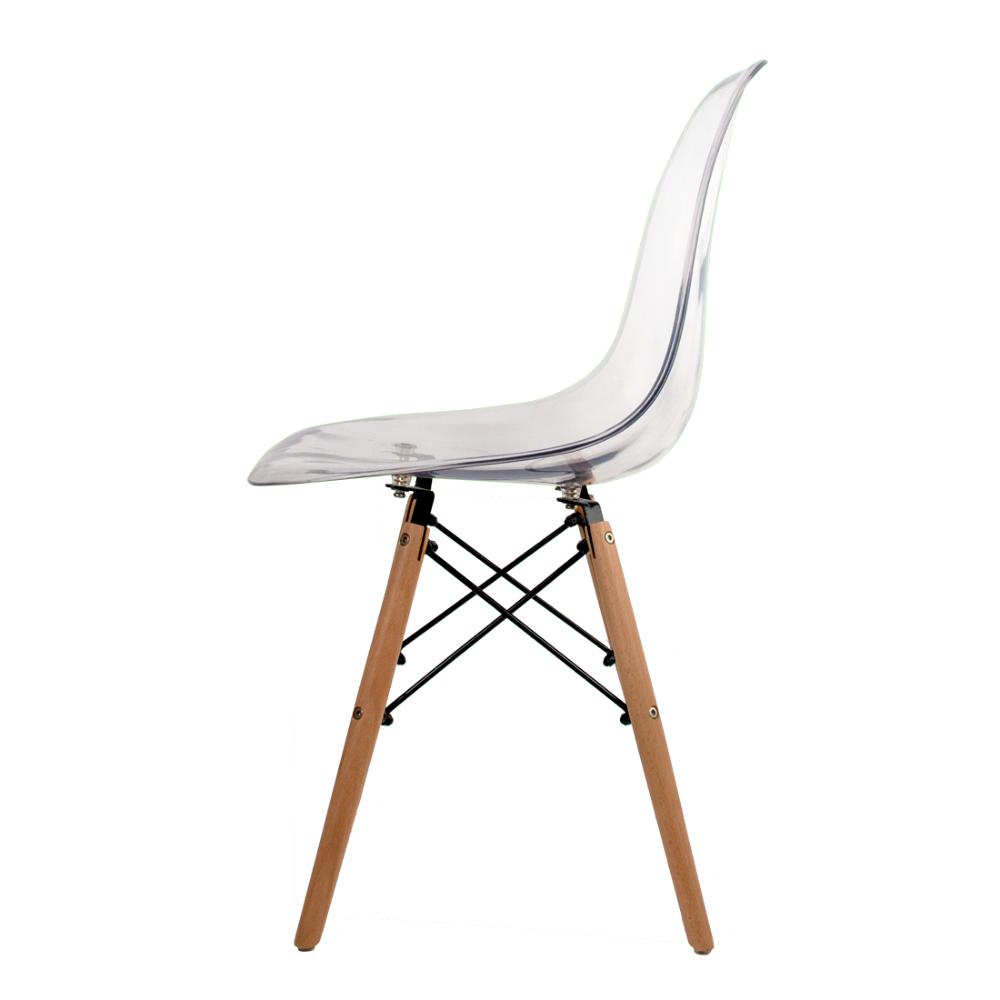 Conheça nossa linha de Cadeira Eames e se apaixone por esse modelo que vai mudar o ambiente da sua casa, deixando ainda mais moderno, bonito e sofisticado.A Cadeira é um item que faz toda a diferença em um ambiente e Charles Eames fez história na indústria mundial de móveis com modelos exclusivos de cadeiras nos anos 50 que continuam inspirando designs até hoje. Nossa Cadeira Eames com Base de Madeira Natural DSW foram inspiradas nesses modelos de Charles Eames. São Cadeiras, com curvas detalhadamente desenvolvidas para o seu conforto. Essa Cadeira é ideal para ambientes como; sala de jantar,Com altíssima qualidade, nossas Cadeiras Eames foram desenvolvidas com formato ergonômico para melhor adaptação e experiência de nossos consumidores; sua concha é produzida em PC (Policarbonato) garantindo durabilidade e conforto em seu encosto. Os pés são feitos em madeira natural de carvalho, proporcionando a beleza e charme da sua Cadeira, além de uma grade em aço no modelo Eiffel que proporciona segurança e firmeza para sua base. A cadeira ainda conta com sapatas antiderrapantes evitando deslizamentos e acidentes com seu produto, garantindo a confiabilidade da marca Empório Tiffany.Muito mais que um item de decoração, sua Cadeira Eames é uma peça funcional, moderna e adequada para os momentos mais agradáveis em família ou entre amigos.Montagem: Sua Cadeira Eames com Base de Madeira Natural será enviada desmontada, porém acompanhado de um manual de instruções e kit de montagem, não sendo necessário a contratação de um profissional para montagem.Obs.: Todos os itens enviados devem ser utilizados na montagem, a falta de algum parafuso ou arruela pode causar instabilidade, podendo ocasionar a quebra da concha e a perda da validade da garantia. Orientamos a seguir todos os passos informados no manual de montagem.Limpeza: A Cadeira Eames pode ser limpa com apenas um pano levemente umedecido com água, seguido de um pano seco. Não utilizar produtos químicos abrasivos ou limpeza a vapor, isso pode danificar seu produto, causando a perda da garantia do fabricanteMedidas do produto: Largura: 46cm x Altura: 81cm x Comprimento: 53,5cm.Cor: TransparenteQuantidade: 1Garantia: 90 dias a partir da emissão da nota fiscal.