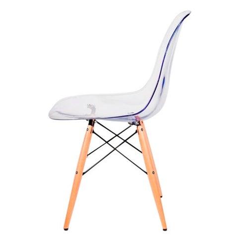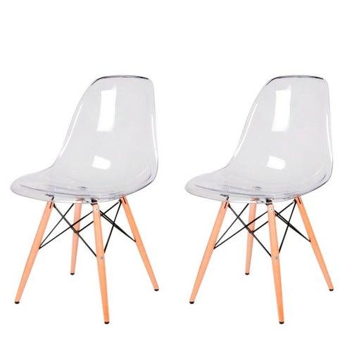 Conheça nossa linha de Cadeira Eames e se apaixone por esse modelo que vai mudar o ambiente da sua casa, deixando ainda mais moderno, bonito e sofisticado.A Cadeira é um item que faz toda a diferença em um ambiente e Charles Eames fez história na indústria mundial de móveis com modelos exclusivos de cadeiras nos anos 50 que continuam inspirando designs até hoje. Nossa Cadeira Eames com Base de Madeira Natural DSW foram inspiradas nesses modelos de Charles Eames. São Cadeiras, com curvas detalhadamente desenvolvidas para o seu conforto. Essa Cadeira é ideal para ambientes como; sala de jantar,Com altíssima qualidade, nossas Cadeiras Eames foram desenvolvidas com formato ergonômico para melhor adaptação e experiência de nossos consumidores; sua concha é produzida em PC (Policarbonato) garantindo durabilidade e conforto em seu encosto. Os pés são feitos em madeira natural de carvalho, proporcionando a beleza e charme da sua Cadeira, além de uma grade em aço no modelo Eiffel que proporciona segurança e firmeza para sua base. A cadeira ainda conta com sapatas antiderrapantes evitando deslizamentos e acidentes com seu produto, garantindo a confiabilidade da marca Empório Tiffany.Muito mais que um item de decoração, sua Cadeira Eames é uma peça funcional, moderna e adequada para os momentos mais agradáveis em família ou entre amigos.Montagem: Sua Cadeira Eames com Base de Madeira Natural será enviada desmontada, porém acompanhado de um manual de instruções e kit de montagem, não sendo necessário a contratação de um profissional para montagem.Obs.: Todos os itens enviados devem ser utilizados na montagem, a falta de algum parafuso ou arruela pode causar instabilidade, podendo ocasionar a quebra da concha e a perda da validade da garantia. Orientamos a seguir todos os passos informados no manual de montagem.Limpeza: A Cadeira Eames pode ser limpa com apenas um pano levemente umedecido com água, seguido de um pano seco. Não utilizar produtos químicos abrasivos ou limpeza a vapor, isso pode danificar seu produto, causando a perda da garantia do fabricanteMedidas do produto: Largura: 46cm x Altura: 81cm x Comprimento: 53,5cm.Cor: TransparenteQuantidade: 2Garantia: 90 dias a partir da emissão da nota fiscal.