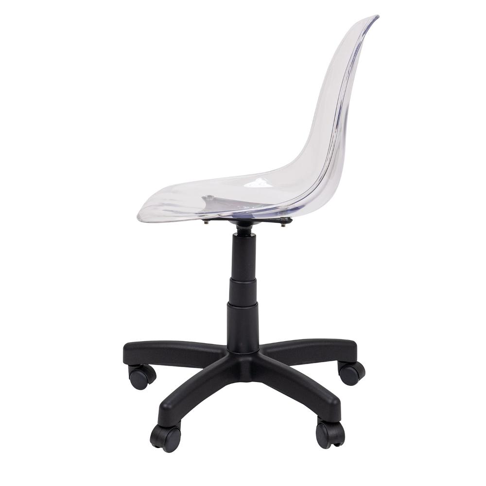 Com altíssima qualidade, nossas Cadeiras Eames foram desenvolvidas com formato ergonômico para melhor adaptação e experiência de nossos consumidores durante todo o dia de trabalho; sua concha é produzida em PP (Policarbonato) garantindo durabilidade e conforto em seu encosto. Os pés são giratórios, proporcionando mobilidade, beleza, charme. Contando com 5 rodízios, garantindo assim, segurança e firmeza para seu produto. A cadeira ainda conta com rodas em Policarbonato, garantindo um produto seguro e mantendo a confiabilidade da marca Empório Tiffany.Medidas do produto: Largura: 56cm x Altura: miníma 80cm - máxima: 92cm x Comprimento: 57,5cm.Cor: TransparenteQuantidade: 1Garantia: 90 dias a partir da emissão da nota fiscal.