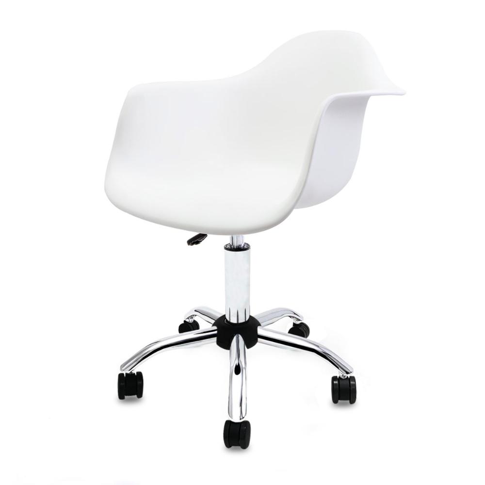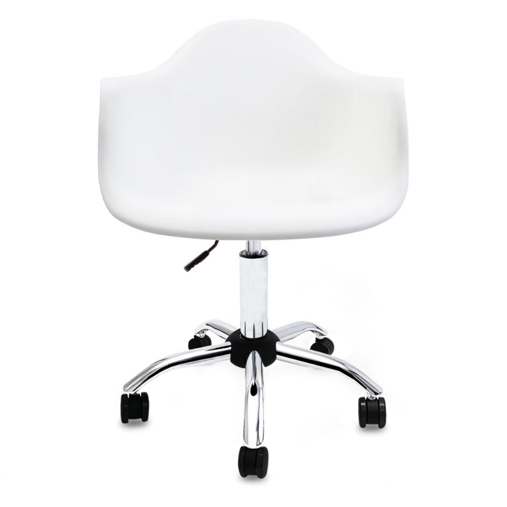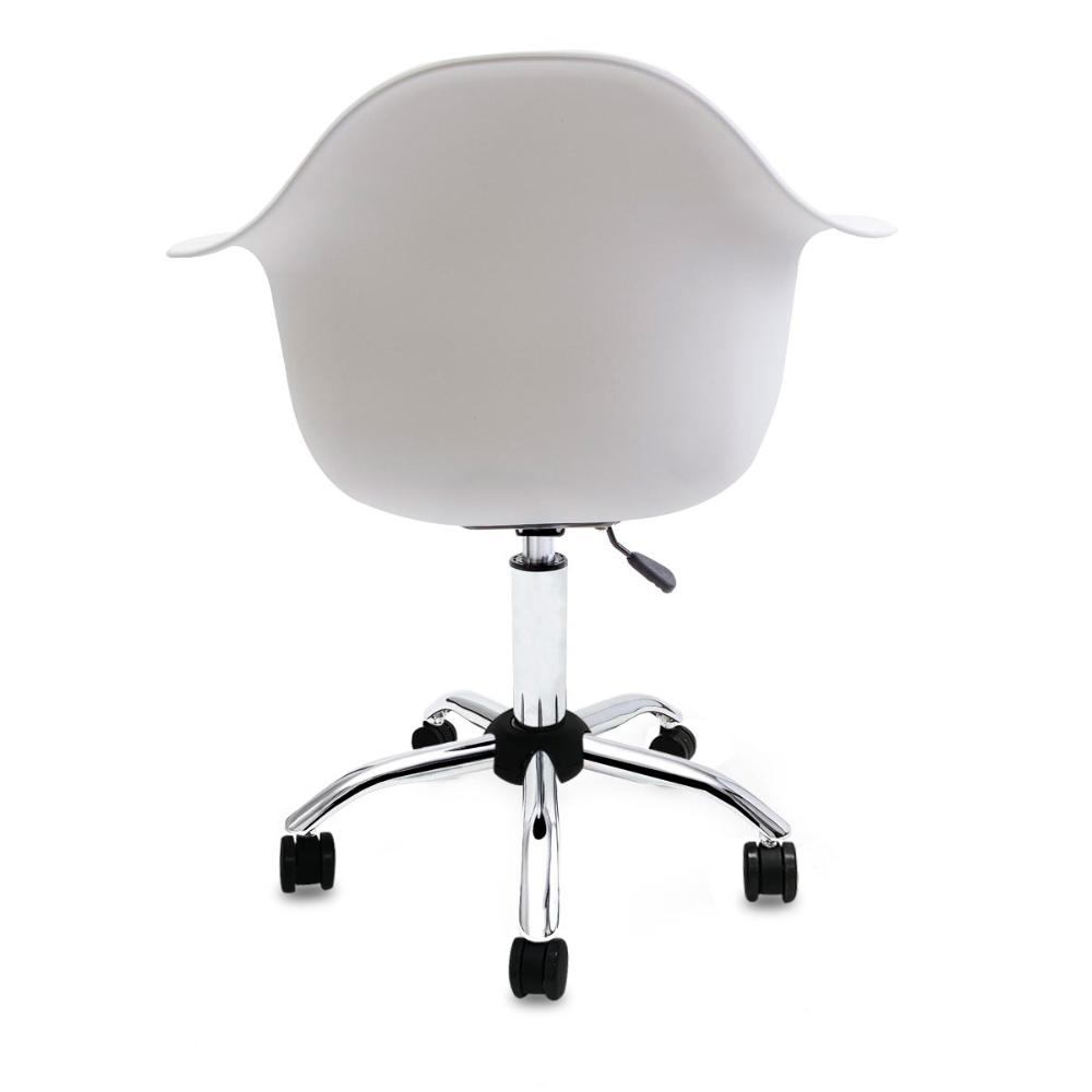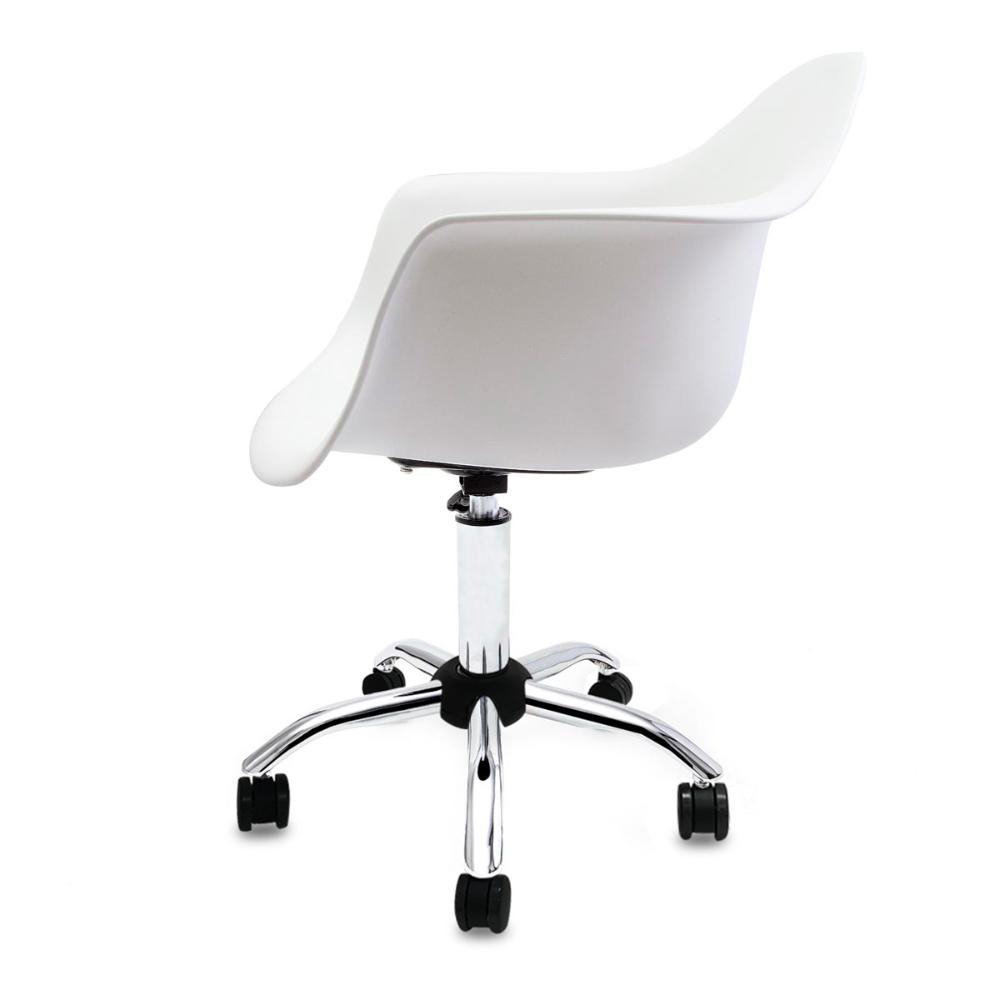 Com altíssima qualidade, nossas Cadeiras Eames foram desenvolvidas com formato ergonômico para melhor adaptação e experiência de nossos consumidores durante todo o dia de trabalho; sua concha é produzida em PP (Polipropileno) garantindo durabilidade e conforto em seu encosto. Os pés são giratórios, proporcionando mobilidade, beleza, charme. Contando com 5 rodízios, garantindo assim, segurança e firmeza para seu produto. A cadeira ainda conta com rodas em polipropileno, garantindo um produto seguro e mantendo a confiabilidade da marca Empório Tiffany.Medidas do produto: Largura: 63cm x Altura: miníma 79cm - máxima: 91cm x Comprimento: 67cm.Cor: BrancoQuantidade: 1Garantia: 90 dias a partir da emissão da nota fiscal.