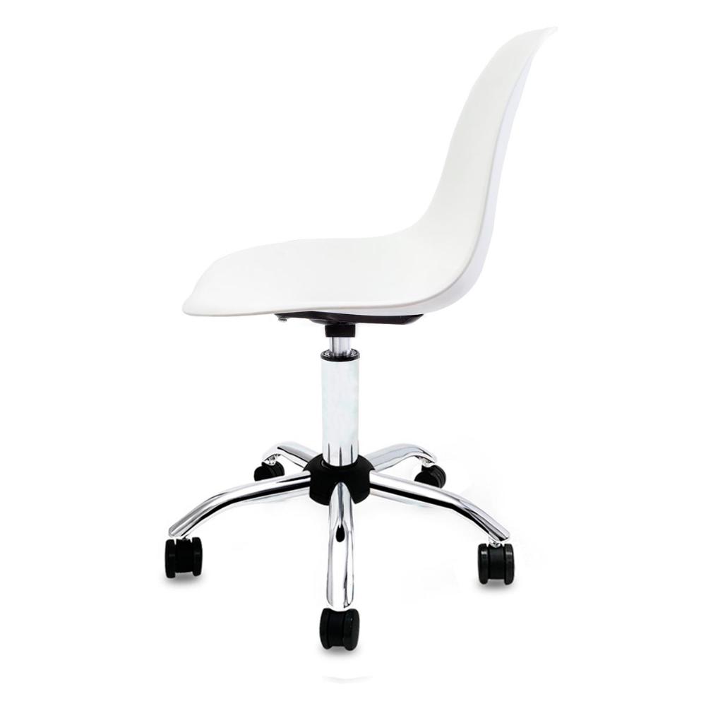 Com altíssima qualidade, nossas Cadeiras Eames foram desenvolvidas com formato ergonômico para melhor adaptação e experiência de nossos consumidores durante todo o dia de trabalho; sua concha é produzida em PP (Polipropileno) garantindo durabilidade e conforto em seu encosto. Os pés são giratórios, proporcionando mobilidade, beleza, charme. Contando com 5 rodízios, garantindo assim, segurança e firmeza para seu produto. A cadeira ainda conta com rodas em polipropileno, garantindo um produto seguro e mantendo a confiabilidade da marca Empório Tiffany.Medidas do produto: Largura: 56cm x Altura: miníma 80cm - máxima: 92cm x Comprimento: 57,5cm.Cor: BrancoQuantidade: 2Garantia: 90 dias a partir da emissão da nota fiscal.