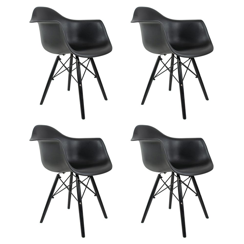 Conjunto Com 4 Cadeiras Eames Com Braço Preta Base Em Polipropileno