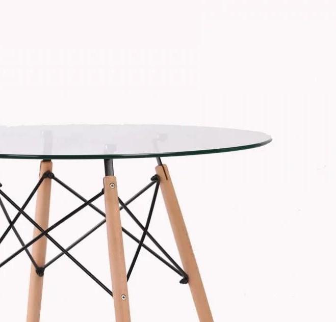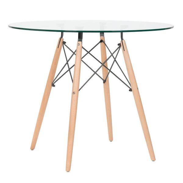 A Mesa é um item que faz toda a diferença em um ambiente e Charles Eames fez história na indústria mundial de móveis com modelos exclusivos de cadeiras nos anos 50 que continuam inspirando designs até hoje. Nossas mesas foram inspiradas nesses modelos de cadeiras de Eames, sendo o casamento ideal e harmônico para esse conjunto incrível.As Mesas Eames Redonda com Base em Madeira Natural são ideias para qualquer ambiente e podem ser usadas em salas de jantar, sala de estar, cozinhas e áreas externas. Fabricada em MDF as mesas Eames são resistentes a água, com cobertura em fórmica, os pés são feitos em madeira natural de carvalho, com uma grade de aço no formato Eiffel que ajuda a dar sustentação e garantir segurança aos produtos.Altura: 72 cmAmbiente Principal: Sala de JantarCor do Produto:TransparenteVidro Temperado: 10mmGarantia do Fornecedor:3 mesesItens Inclusos1 Mesa, Kit Ferragens e Manual de MontagemLargura: 90 cmMaterial do Tampo: VidroNecessita montagem: SimOrigem do Produto:NacionalPeso: 18,5kgProfundidade:90 cmSuporta até (kg):30 kg