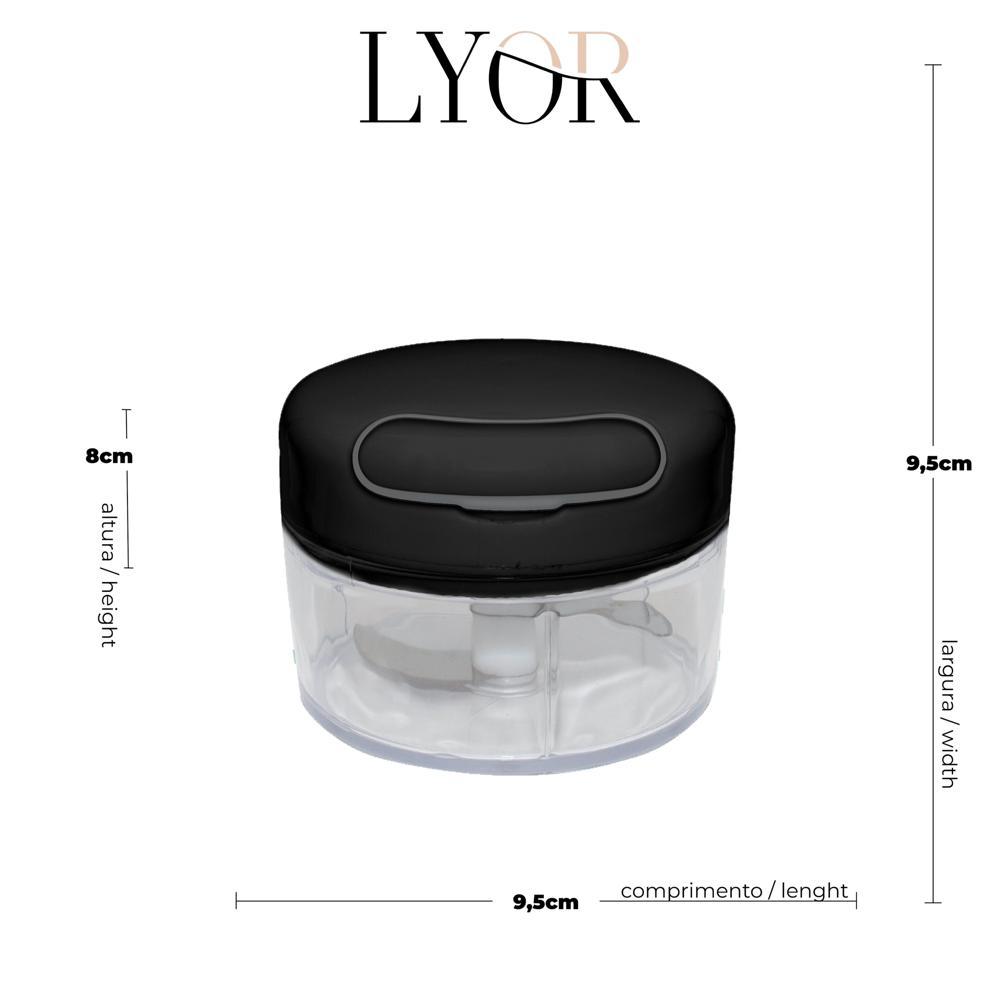 O Mini Processador de Alimentos Manual da Lyor é a solução prática e eficiente para facilitar o preparo das suas refeições. Com um design compacto e funcional, este mini processador oferece praticidade e versatilidade para picar e triturar alimentos de forma rápida e fácil.Características: Design Compacto: Com dimensões de 8,6cm x 7cm, este mini processador é ideal para cozinhas pequenas e para quem busca praticidade no dia a dia. Duas Lâminas Afiadas: Equipado com duas lâminas em aço inoxidável, proporcionando corte preciso e eficiente dos alimentos. Funcionamento Manual: Sem a necessidade de energia elétrica, basta acionar a alavanca de forma simples e rápida para picar os alimentos. Material Resistente: Fabricado em plástico de alta qualidade, o mini processador é durável e fácil de limpar. Cor Preto e Cinza: Design moderno e neutro, perfeito para combinar com diferentes estilos de cozinha.O Mini Processador de Alimentos Manual da Lyor é a escolha ideal para quem busca praticidade e eficiência no preparo de alimentos. Seja para picar ervas, legumes, nozes ou outros ingredientes, este mini processador é um aliado indispensável na cozinha. Tenha mais tempo para curtir suas refeições e menos tempo na preparação, com a praticidade que você merece. Que tal adicionar mais facilidade e agilidade ao seu dia a dia culinário com o Mini Processador de Alimentos Manual da Lyor?O Mini Processador de Alimentos Manual da Lyor é a solução perfeita para agilizar o preparo na cozinha. Com design compacto, lâminas afiadas e operação manual, garante praticidade e eficiência. Ideal para picar ervas, legumes e nozes. Adicione facilidade ao seu dia a dia culinário!