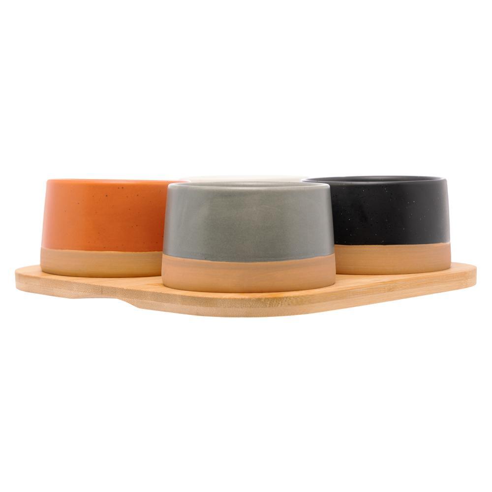 4 Petisqueiras com Bandeja de Bambu 22x22x5,5cm - Lyor