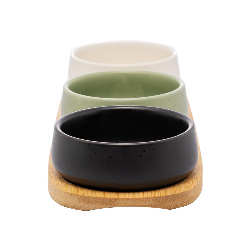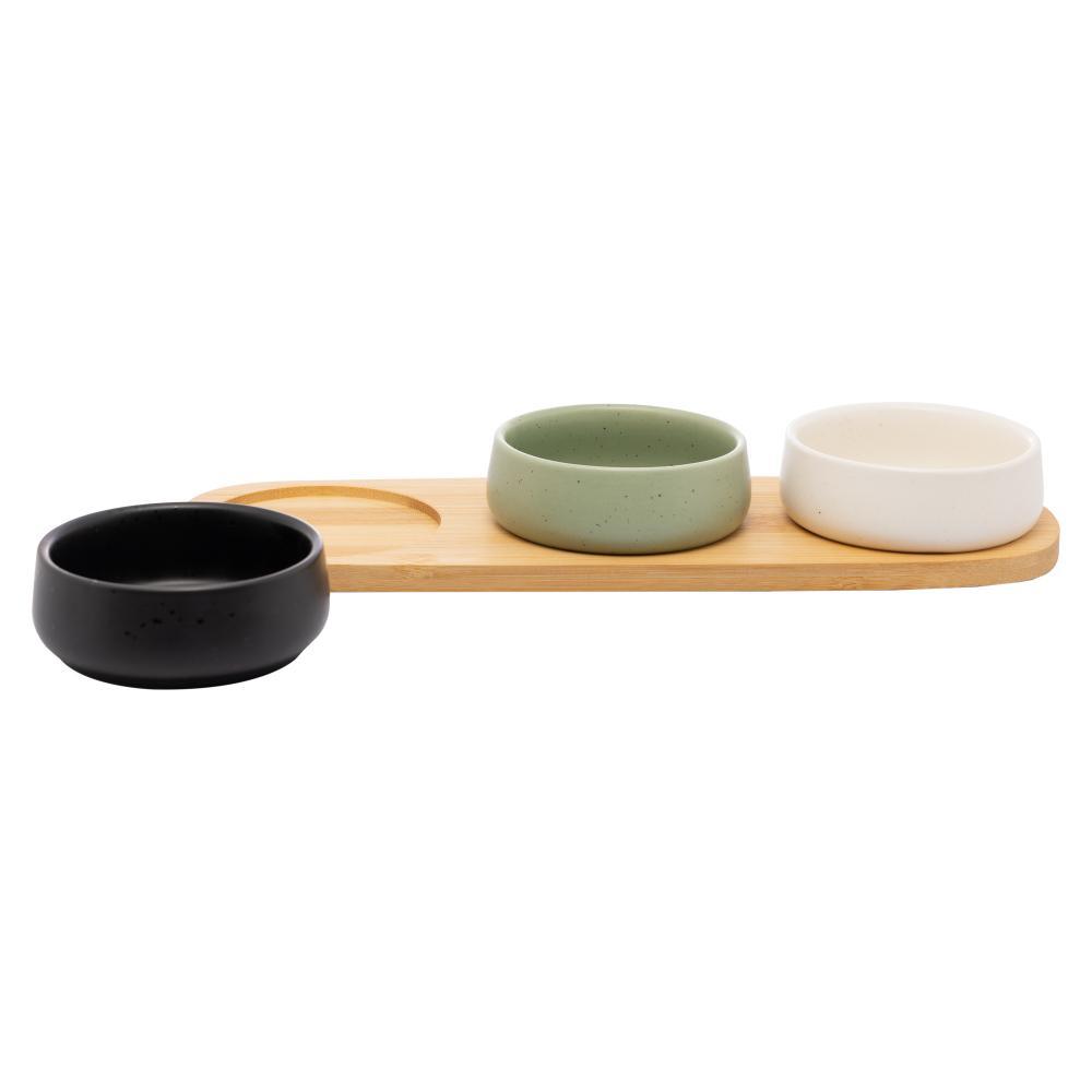 3 Petisqueiras com Bandeja de Bambu 32x10x3,5cm - Lyor