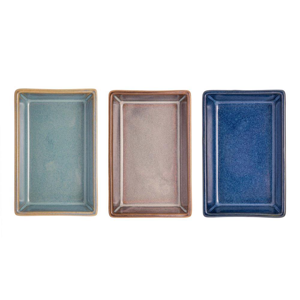3 Petisqueiras de Ceramica com Bandeja 31cmx14,5cmx3,5cm - Lyor