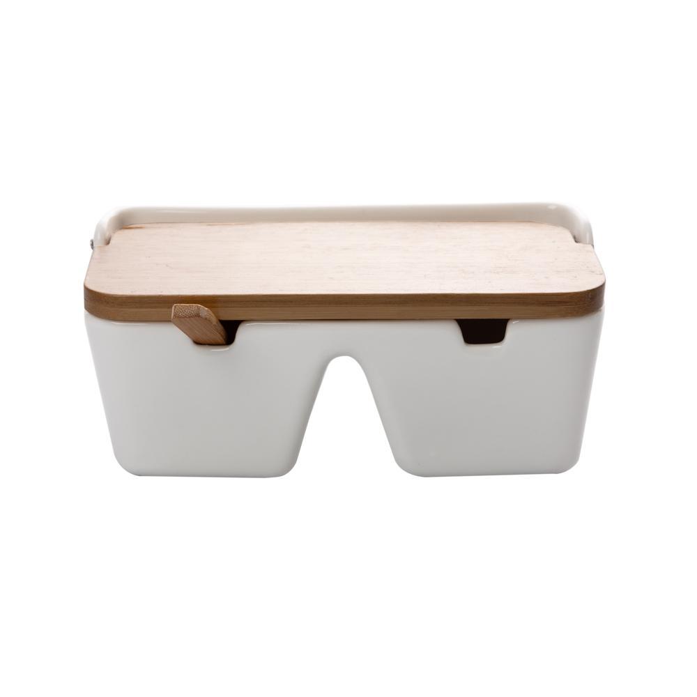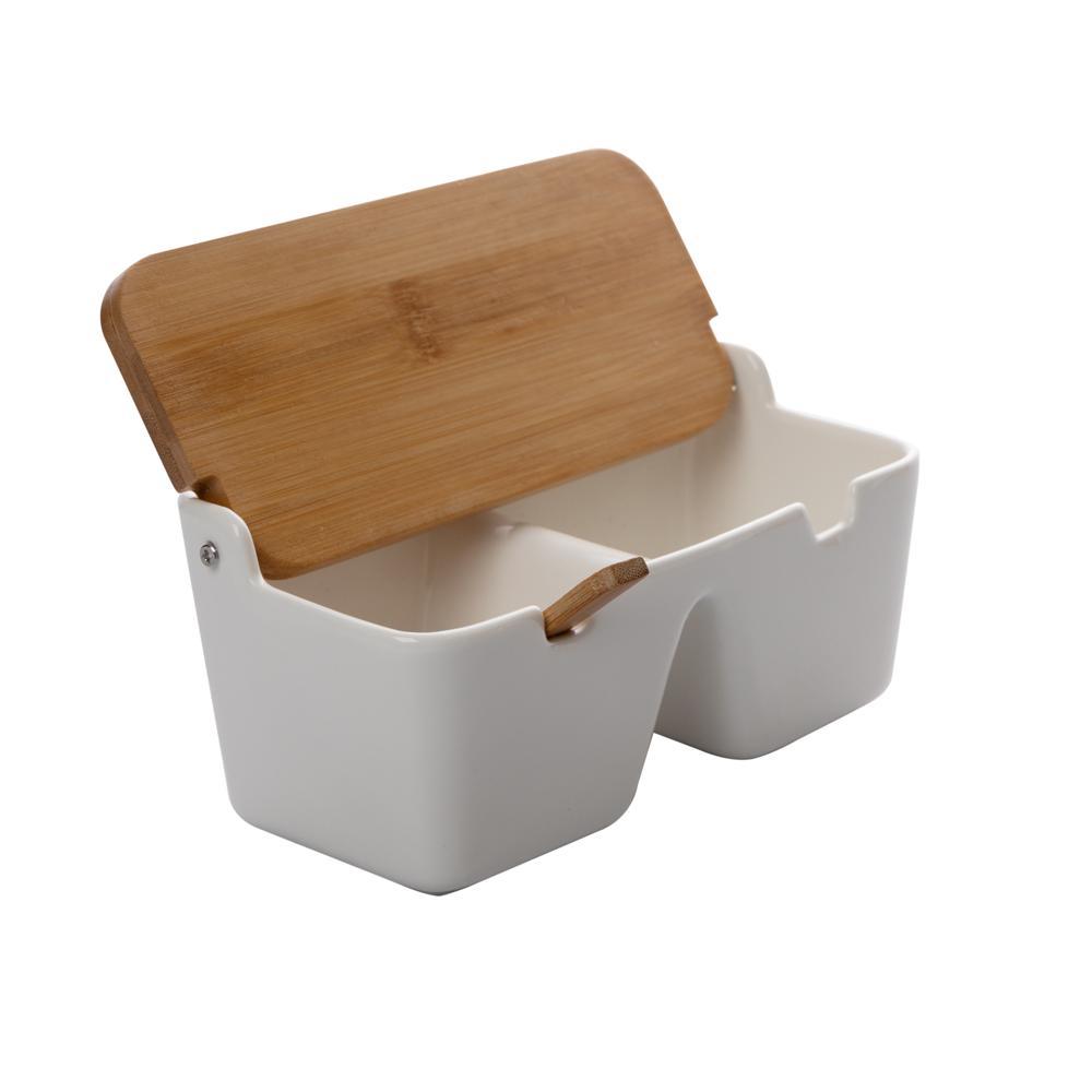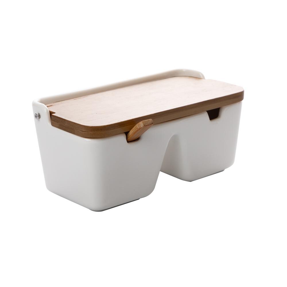 Saleiro duplo de Cerâmica e Bambu com Colher Bianco 19cm