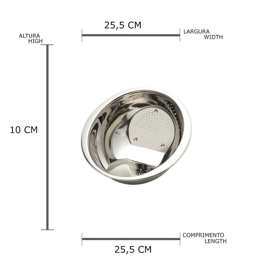 O Escorredor de Arroz de Aço Inox Prime 25cm da Lyor é muito mais do que um simples utensílio de cozinha, é a combinação ideal de praticidade e elegância para a sua rotina culinária. Com um design sofisticado e durável, este escorredor proporciona uma experiência eficiente e higiênica na preparação dos seus pratos favoritos.Características: Material de Alta Qualidade: Feito em aço inoxidável, o escorredor é resistente à corrosão e fácil de limpar, garantindo durabilidade e praticidade. Design Funcional e Moderno: Com dimensões de 26x26x9,5 cm (C x L x A), o escorredor possui o tamanho ideal para uso diário na sua cozinha. Praticidade na Cozinha: Sua estrutura permite escorrer o arroz de forma eficiente, tornando o preparo das refeições mais prático e rápido. Acabamento em Cor Prata: O acabamento elegante em cor prata confere um toque de sofisticação à sua cozinha, combinando com diferentes estilos de decoração. Fácil de Armazenar: Com um tamanho compacto, o escorredor pode ser facilmente armazenado em armários ou gavetas, otimizando o espaço da sua cozinha.O Escorredor de Arroz de Aço Inox Prime 25cm da Lyor é o aliado perfeito para facilitar o seu dia a dia na cozinha, proporcionando qualidade e praticidade em cada preparo. Adicione um toque de elegância e eficiência à sua rotina culinária com este utensílio essencial!O Escorredor de Arroz de Aço Inox Prime 25cm da Lyor combina elegância e praticidade. Feito em aço inoxidável, resistente e fácil de limpar. Design moderno, eficiente e compacto, ideal para uso diário na cozinha. Adicione sofisticação e eficácia ao preparo de suas refeições!