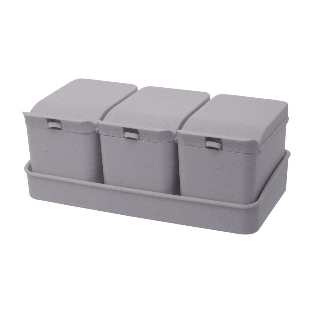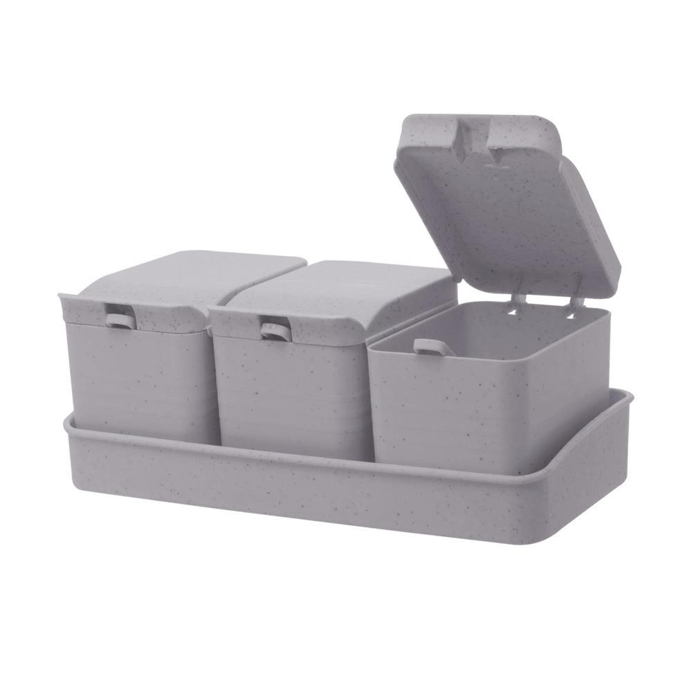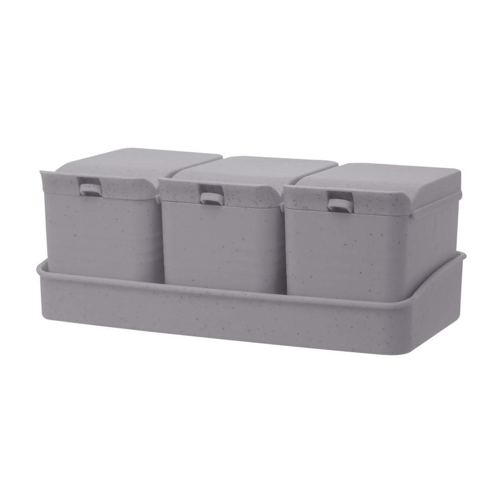 Kit 3 Porta Temperos em PP e Bandeja Lines Cinza 10cm x 18cm
