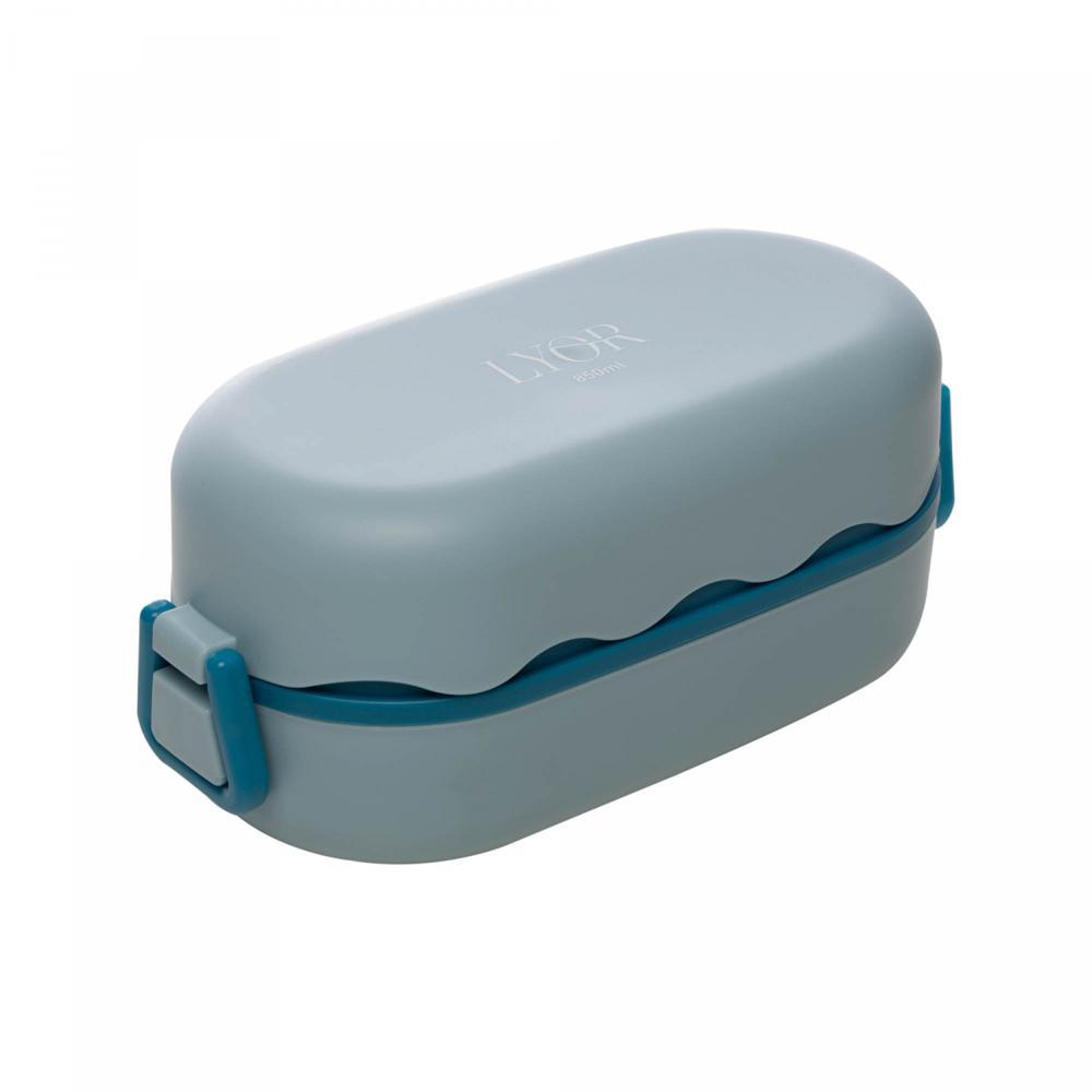 Marmita Hermética com Talheres 850ml Azul Plástico - Lyor