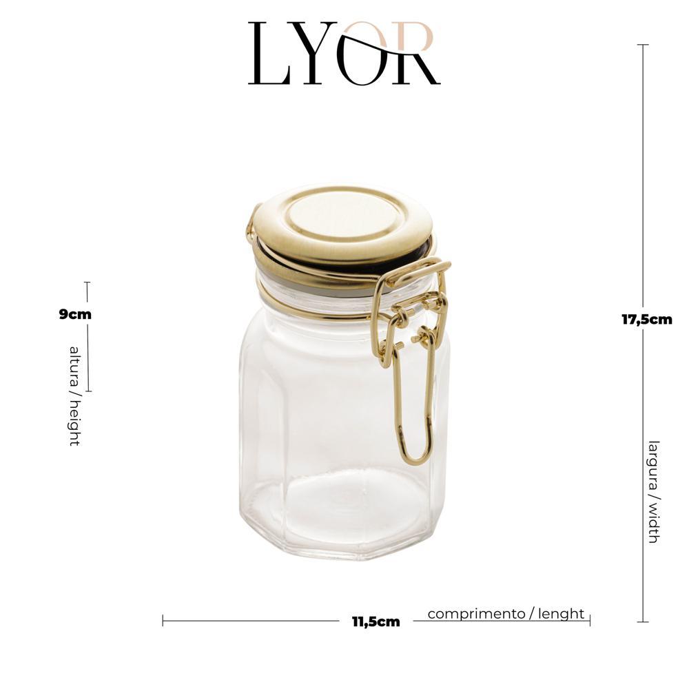 Pote Hermético de Vidro com Tampa em Metal Geométrico Dourado - LyorO Pote Hermético de Vidro com Tampa em Metal Geométrico Dourado da Lyor é a solução perfeita para quem busca armazenamento com estilo. Com suas dimensões compactas de 6cm x 5cm x 8cm, este pote é ideal para organizar e preservar suas especiarias, doces ou até mesmo bijuterias, trazendo um toque sofisticado à sua decoração.Destaques do Produto:Design Elegante: A tampa em metal geométrico Dourado agrega um toque de modernidade e requinte.Material de Qualidade: Produzido em vidro, garante a durabilidade e a higiene na preservação dos alimentos.Capacidade Ideal: Com 100ml, é perfeito para armazenar pequenos itens, mantendo a frescura e o sabor.Versatilidade de Uso: Além da cozinha, pode ser usado em ambientes diversos, como sala, banheiro ou escritório.Fácil Manutenção: Deve ser lavado com detergente neutro e esponja macia, garantindo a beleza do produto por mais tempo.Cuidados Especiais:Lavar à mão, evitando máquinas e produtos químicos agressivos.Secar imediatamente após a lavagem para manter o brilho do vidro e da tampa.Este Pote Hermético combina praticidade e um design marcante, tornando-se uma peça chave para quem valoriza organização e estilo. Com a Lyor, o armazenamento dos seus itens essenciais nunca foi tão bonito e funcional!Organize com estilo! O Pote Hermético de Vidro com Tampa Dourada da Lyor é ideal para especiarias, doces ou bijuterias. Seu design elegante e material durável garantem frescor e beleza. Perfeito para qualquer ambiente. Adquira já o seu!