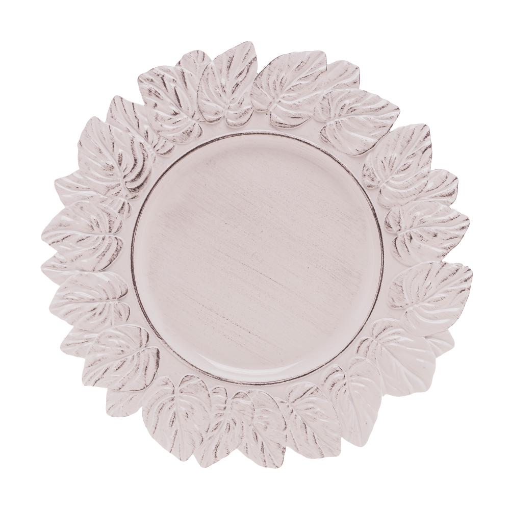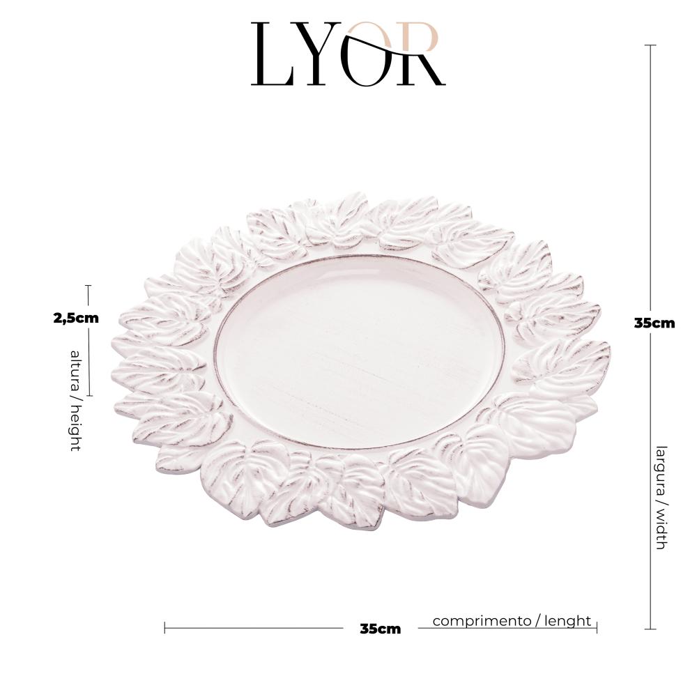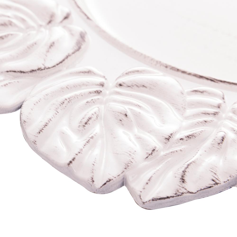 Sousplat de Plástico Platinado Garden Leaf Branco 35cm