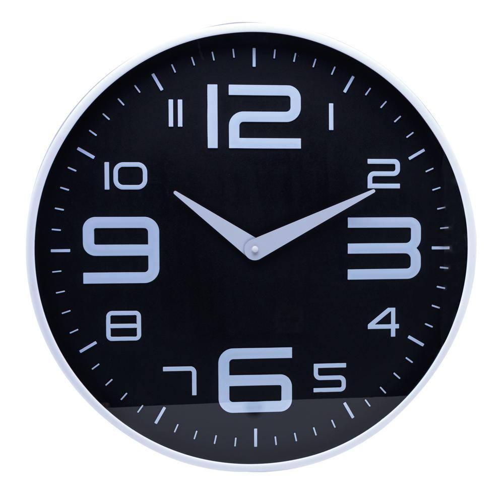 Relógio de Parede em Plástico Preto com Branco 30,5cm - Lyor