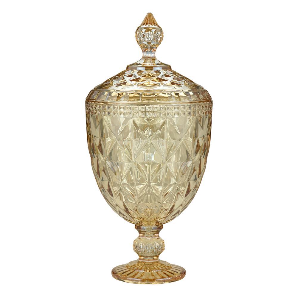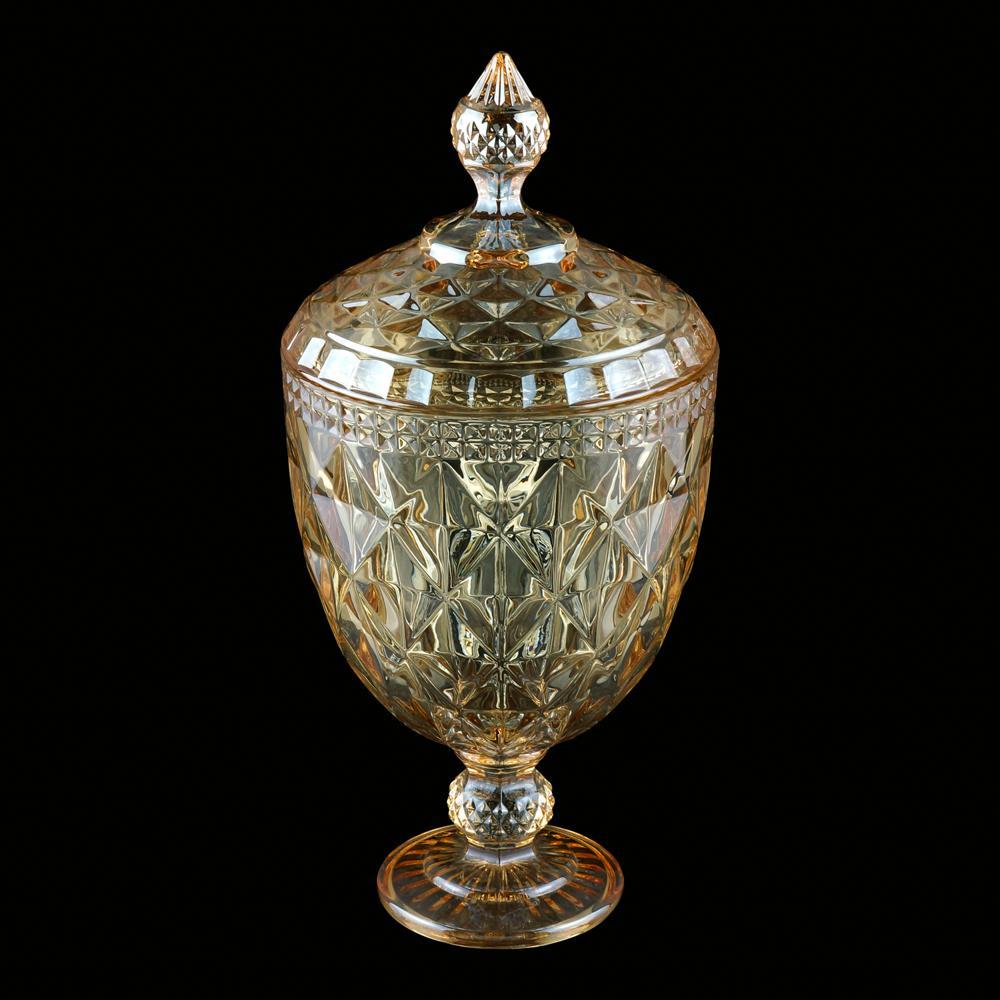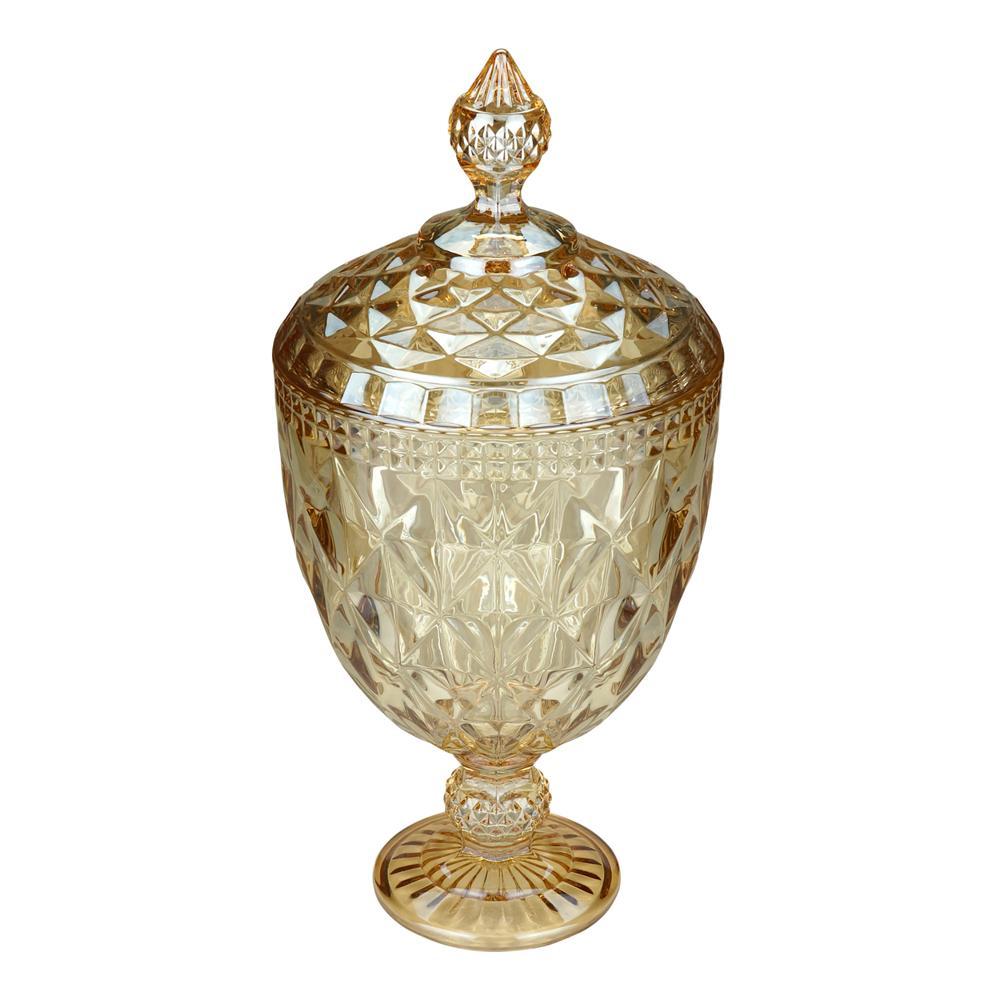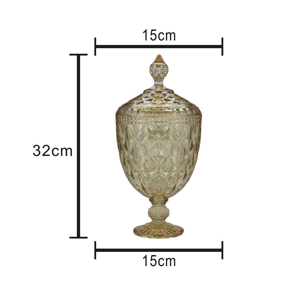 Potiche Cristal com Pé Diamond Âmbar Metalizado 15cm Lyor