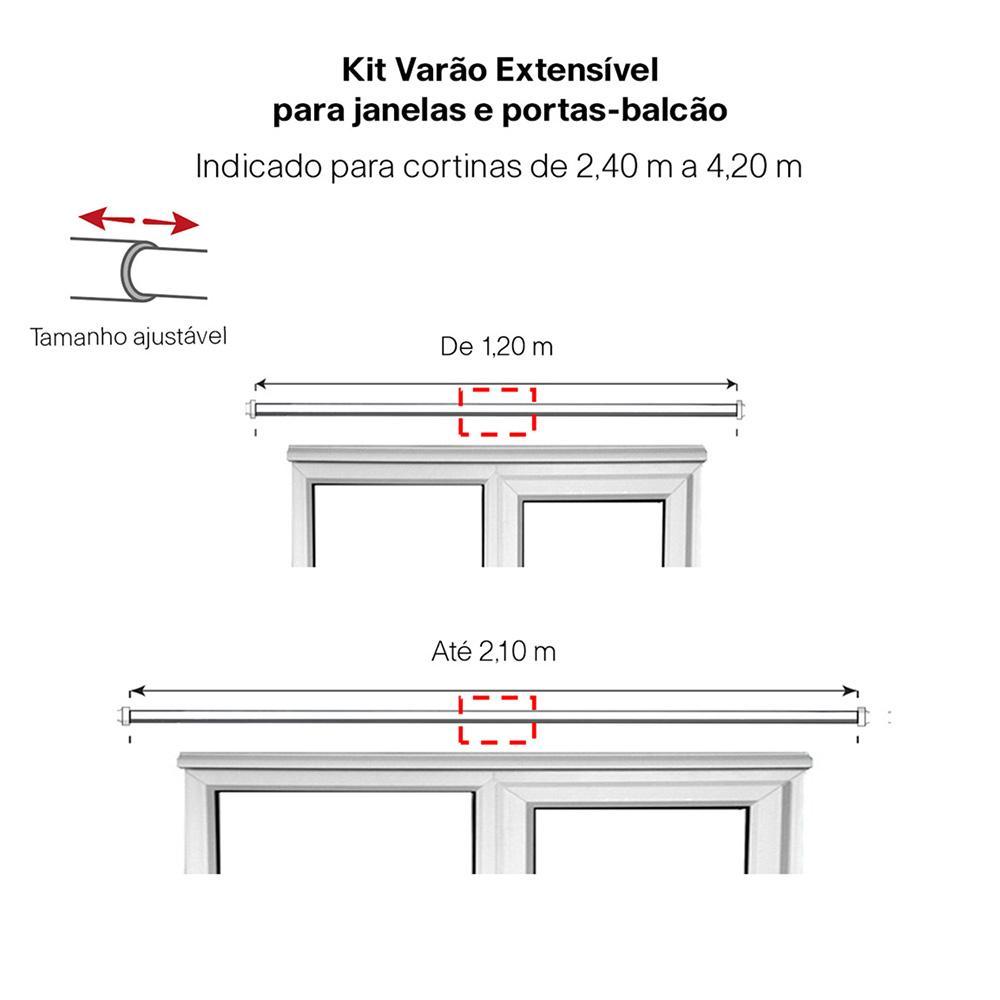 Kit Varão Extensor 120 a 210cm Esfera Cromada 25-28MM