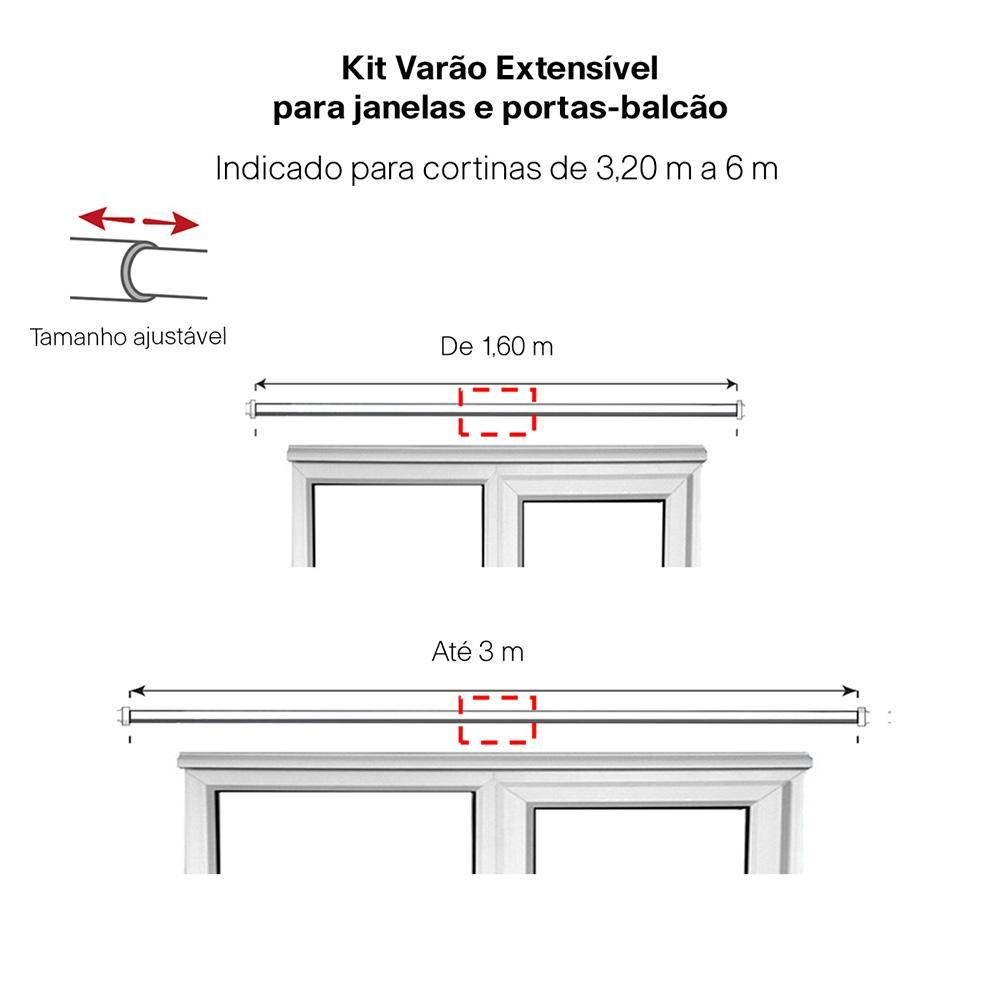 Kit Varão Extensor 160 a 300cm Cilindrica Preta 25-28MM