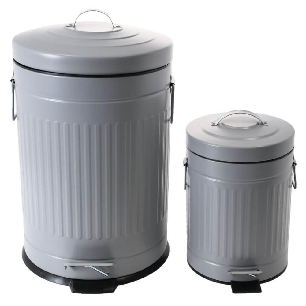 Kit Lixeira Retrô com Pedal Cinza Mollie 5 litros + 20 litros
