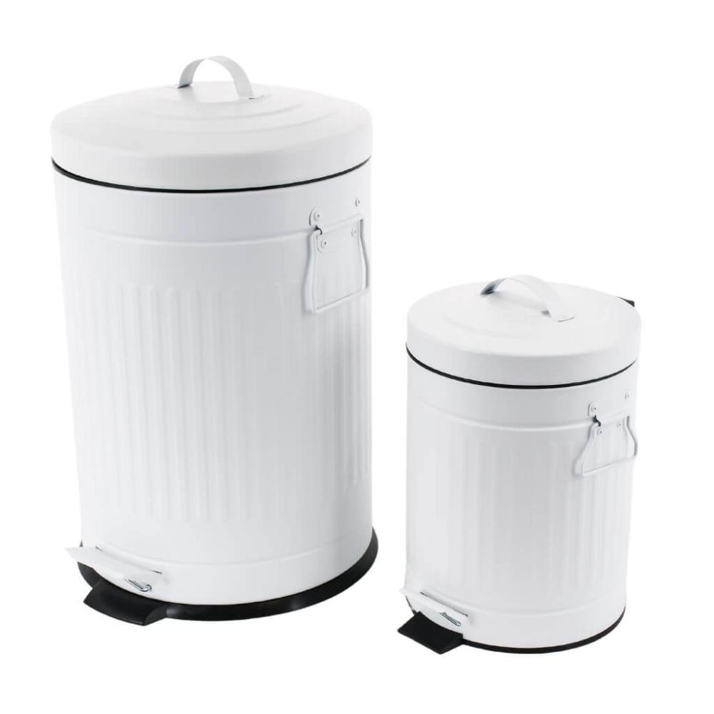 Kit Lixeira Retrô com Pedal Branca Mollie 5 litros + 20 litros (2 Unidades de cada)