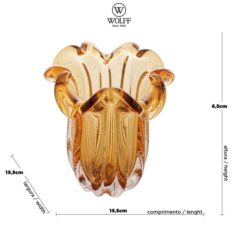 Vaso Wolff Murano Italy Âmbar 18cm x 21cm