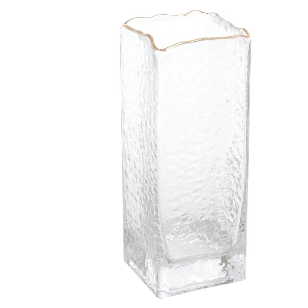 Vaso de Vidro com Borda Dourada Taj 8cm x 8cm x 20cm - Wolff
