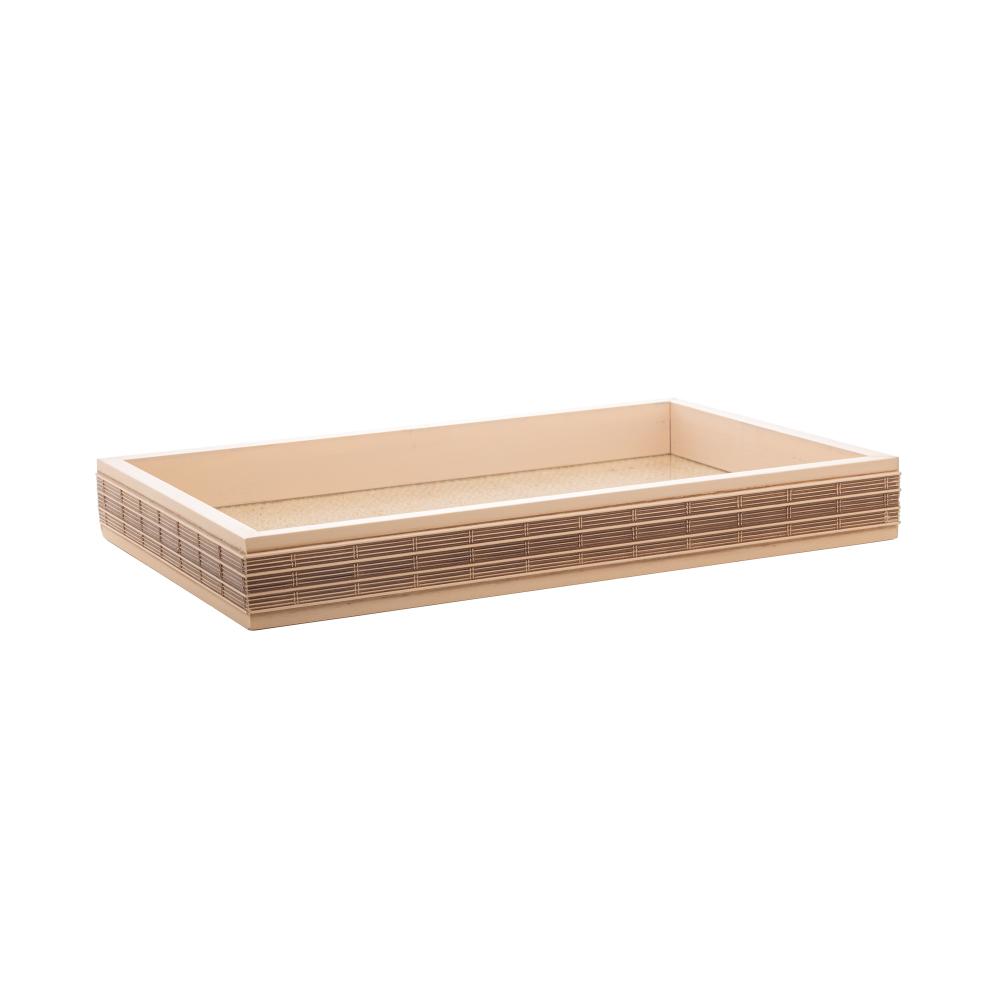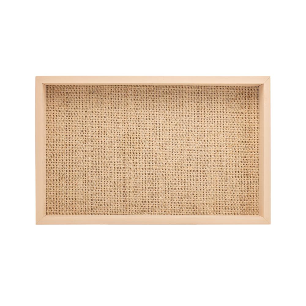 Bandeja de Madeira com Sisal e Bambu Bege 30cm x 17cm - Woodart