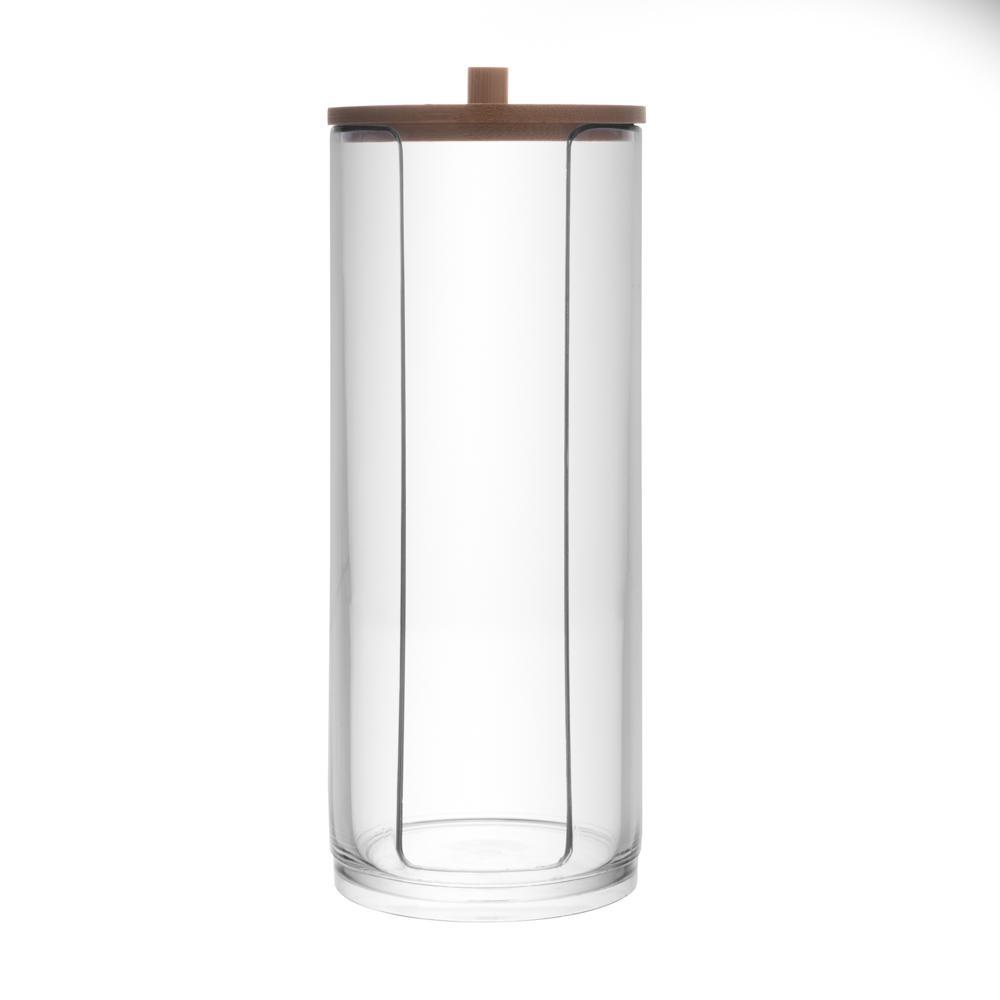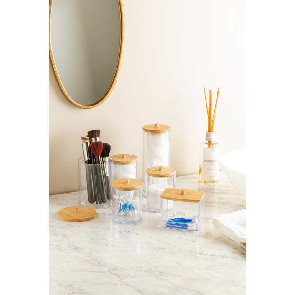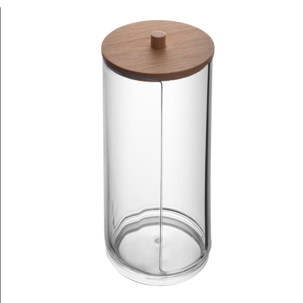 Porta Algodão com Tampa de Bambu My Box 7cm x 7cm x 18cm