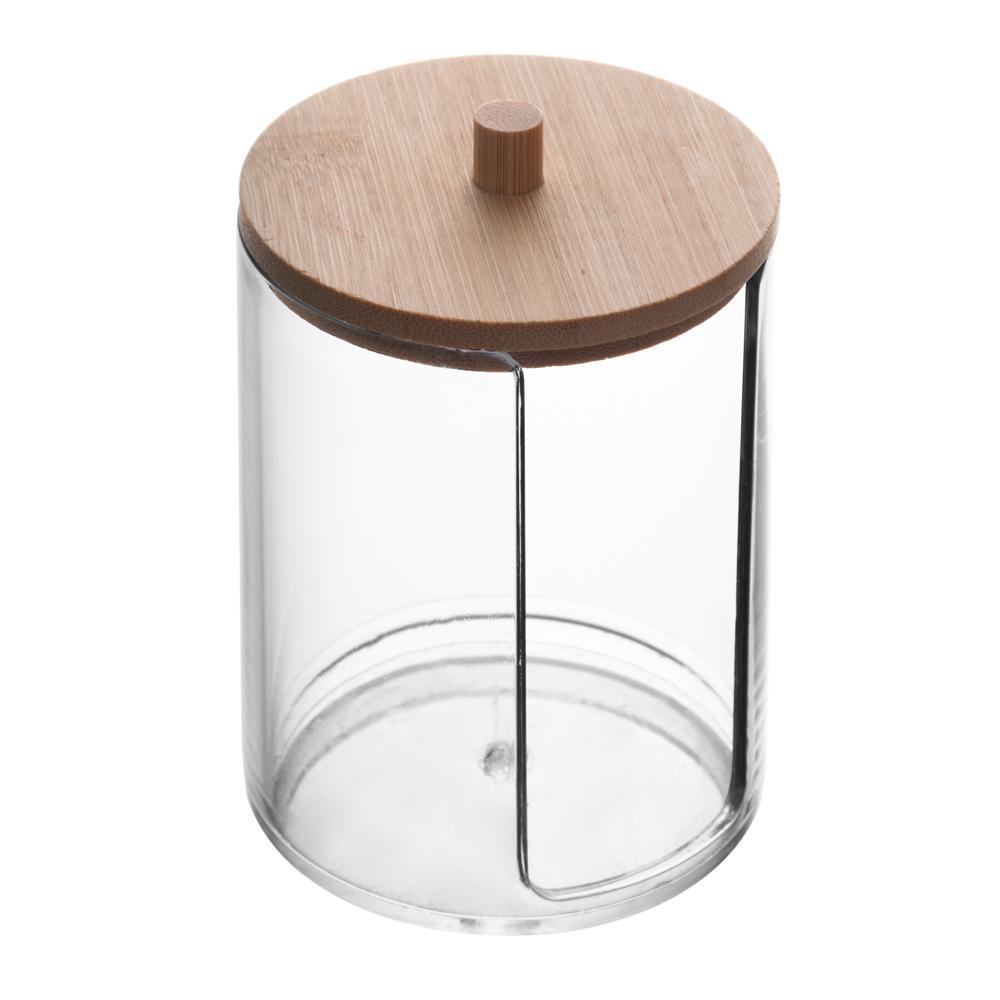 Porta Algodão com Tampa de Bambu My Box 7cm x 7cm x 9cm