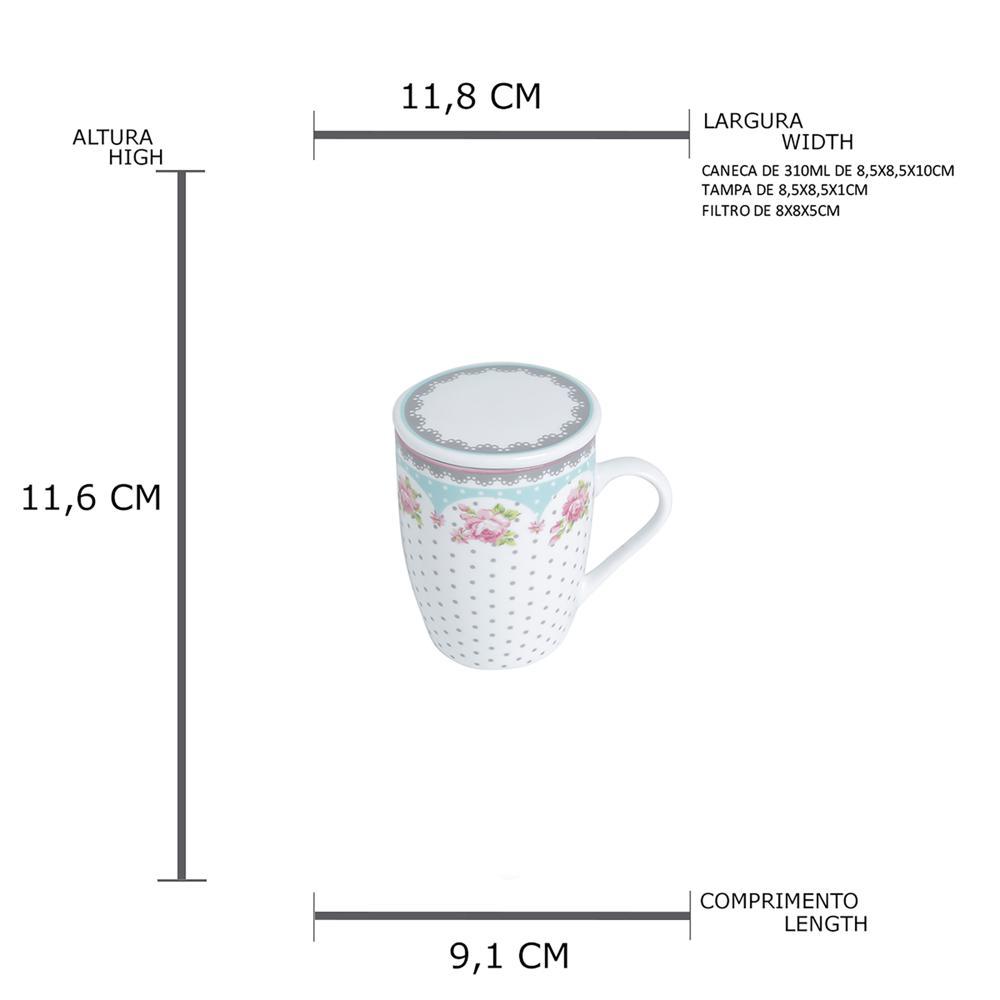 Caneca de Porcelana Super White com Tampa e Filtro Amélia
