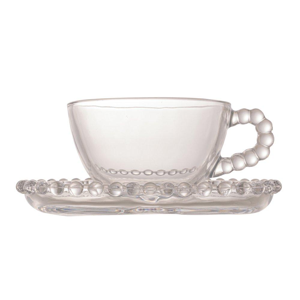 Jogo de 4 Xícaras de Chá Wolff Pearl Coração de Cristal 180ml