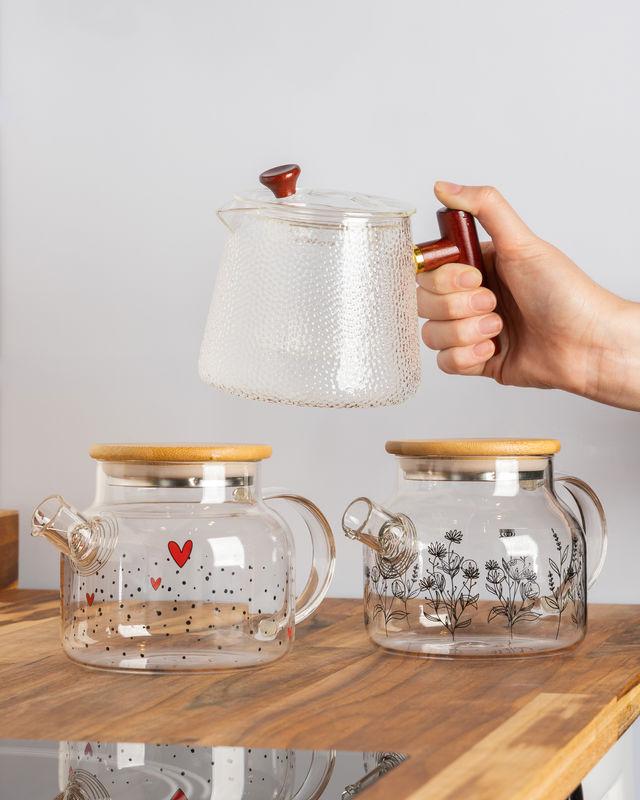 Chaleira de Vidro Martelado com Alça de Bambu 750ml - Wolff