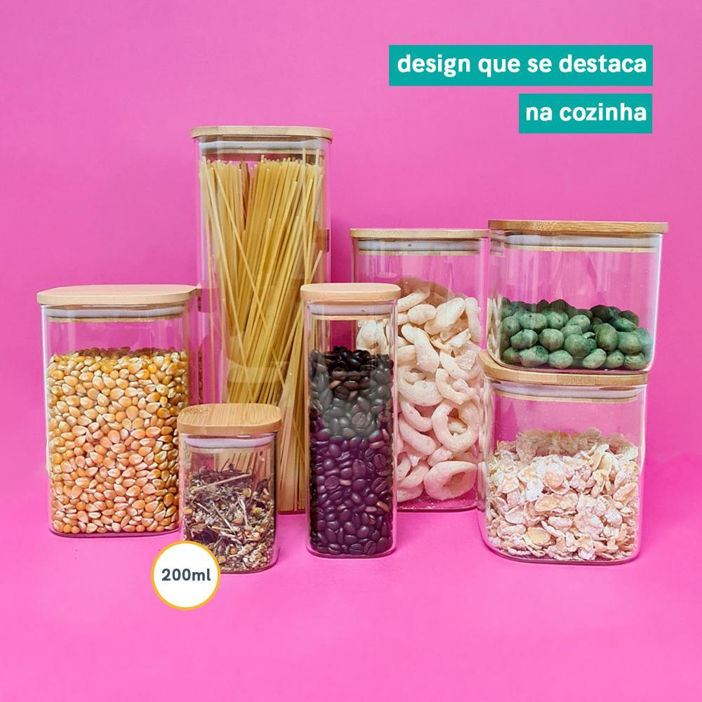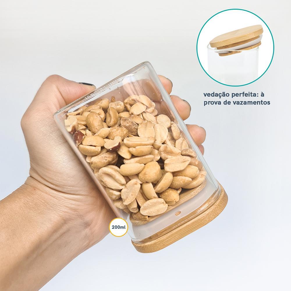 Pote 200Ml De Vidro Flat Com Tampa De Bambu Quadrado