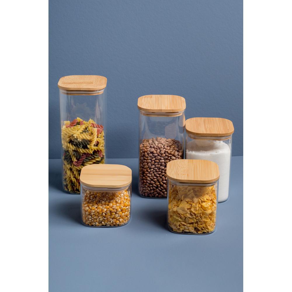 Pote 1,1L De Vidro Flat Com Tampa De Bambu Quadrado