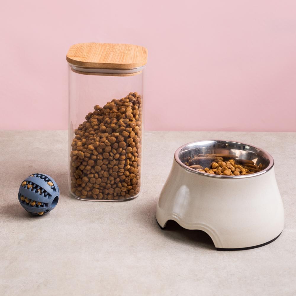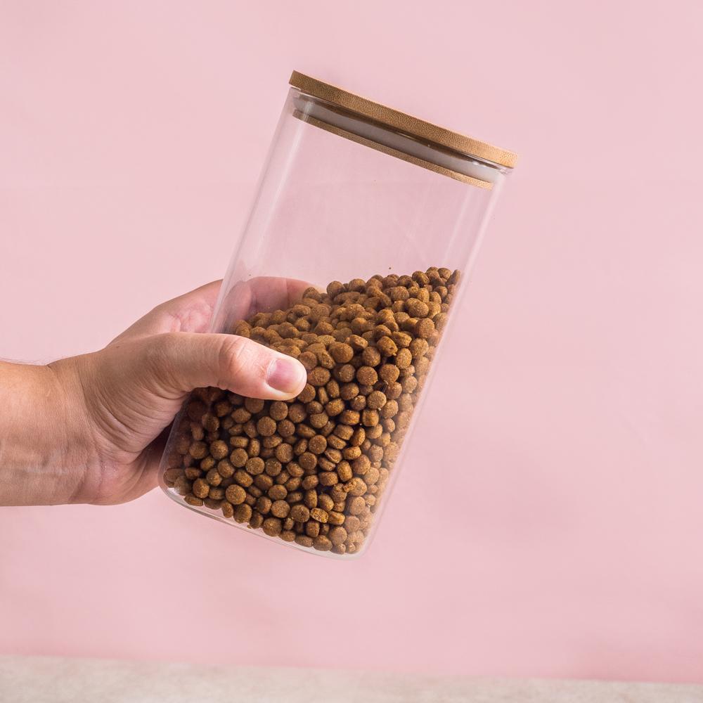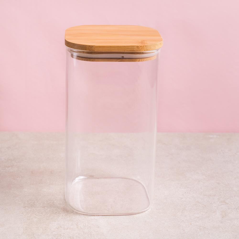 Pote 1,4L De Vidro Flat Com Tampa De Bambu Quadrado