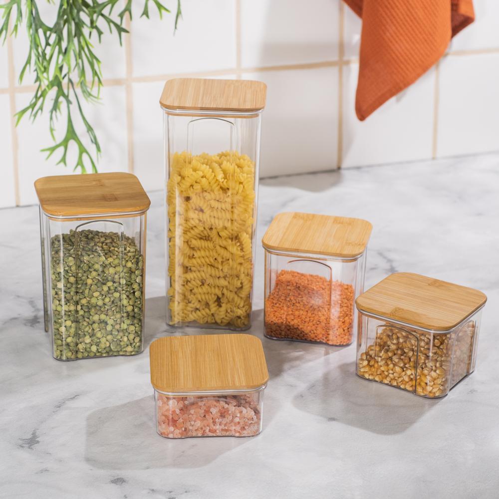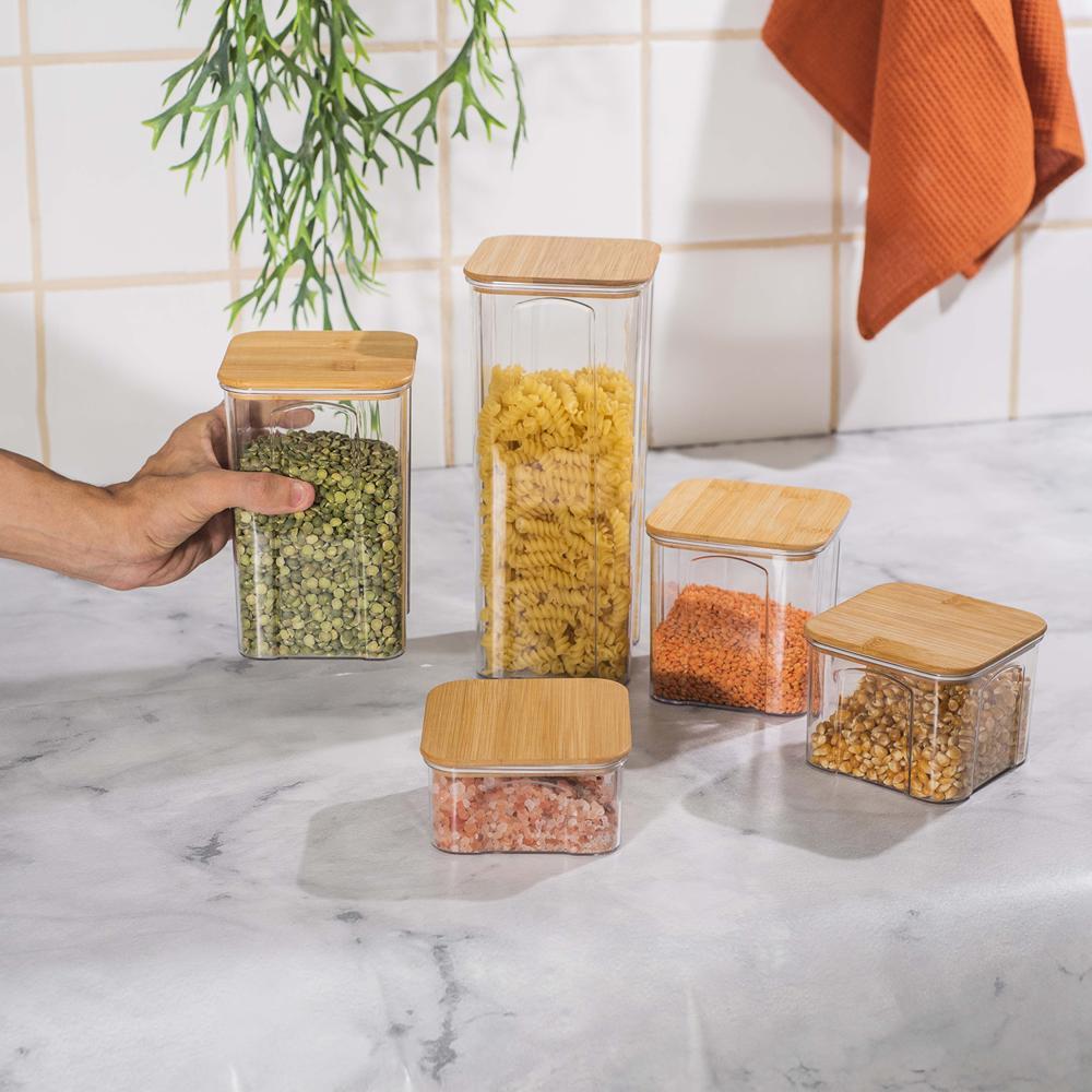 Pote 650Ml De Plástico Translúcido e Tampa De Bambu Quadrado
