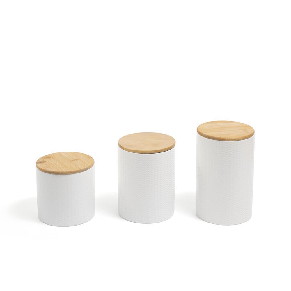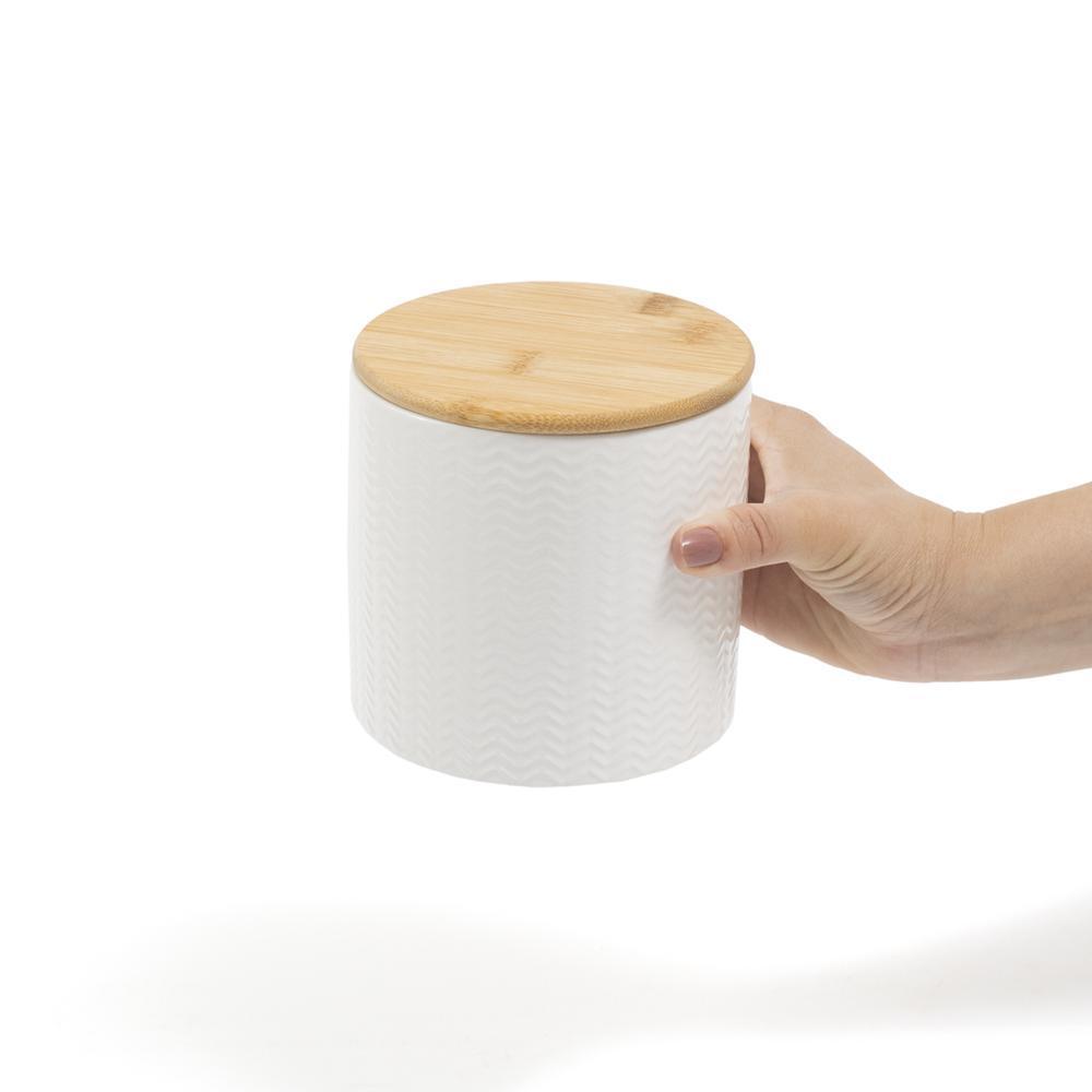 Pote Zig Zag Dolomita Com Tampa De Bambu Pequeno 900Ml