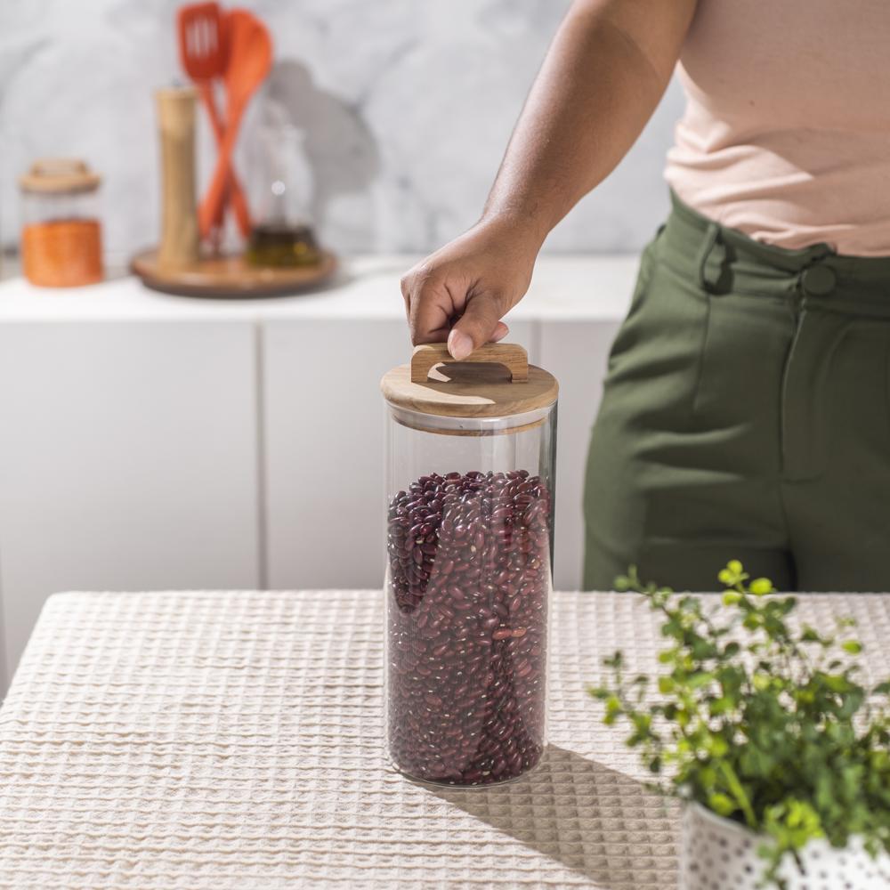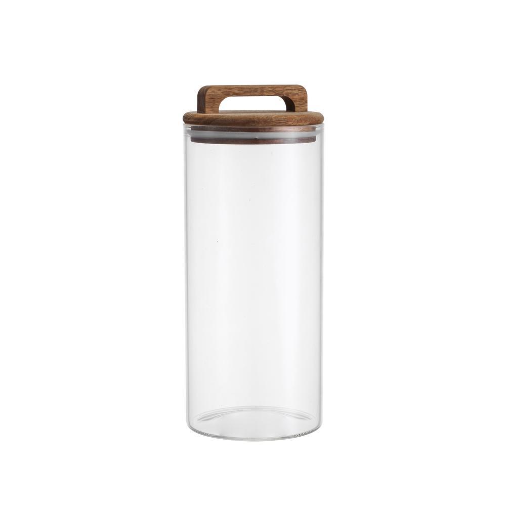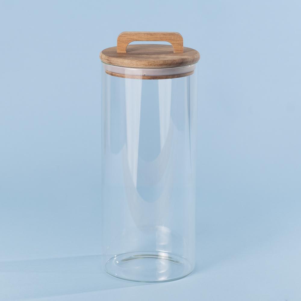 Pote 1300Ml De Vidro Com Tampa Acácia Com Alça